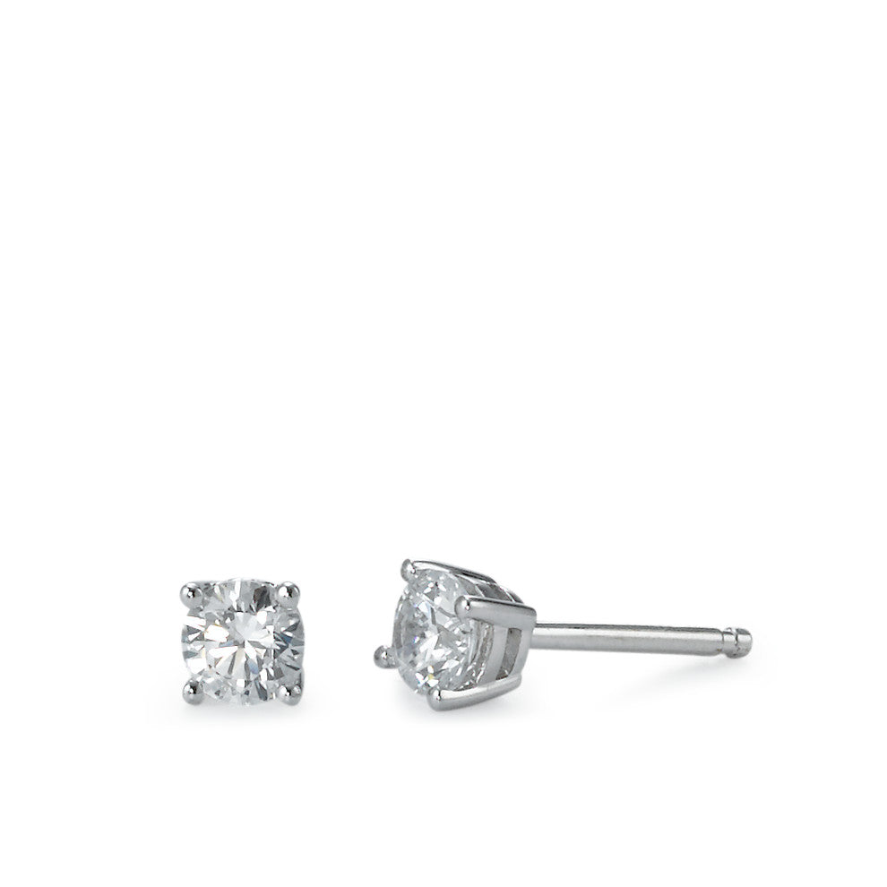 Ohrstecker Silber Zirkonia weiss, 2 Steine, rund rhodiniert Ø4 mm