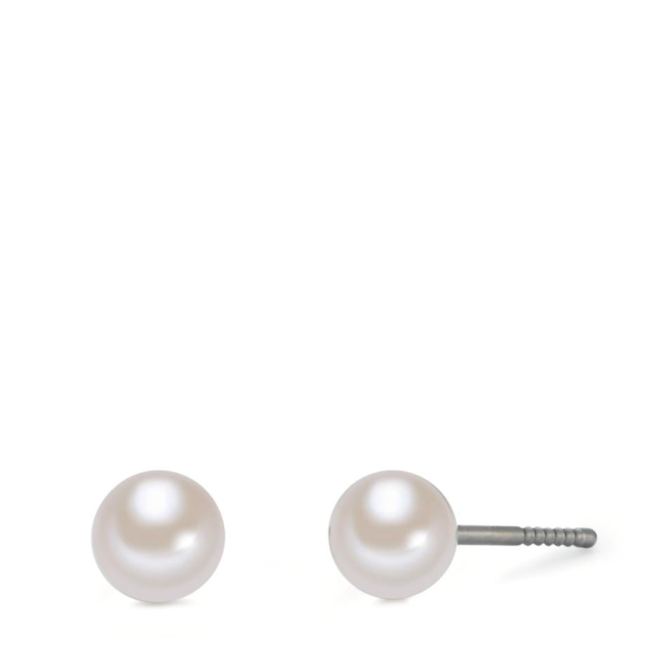 Ohrstecker Titan shining Pearls weiss, 2 Perlen, 6 mm Ø6 mm