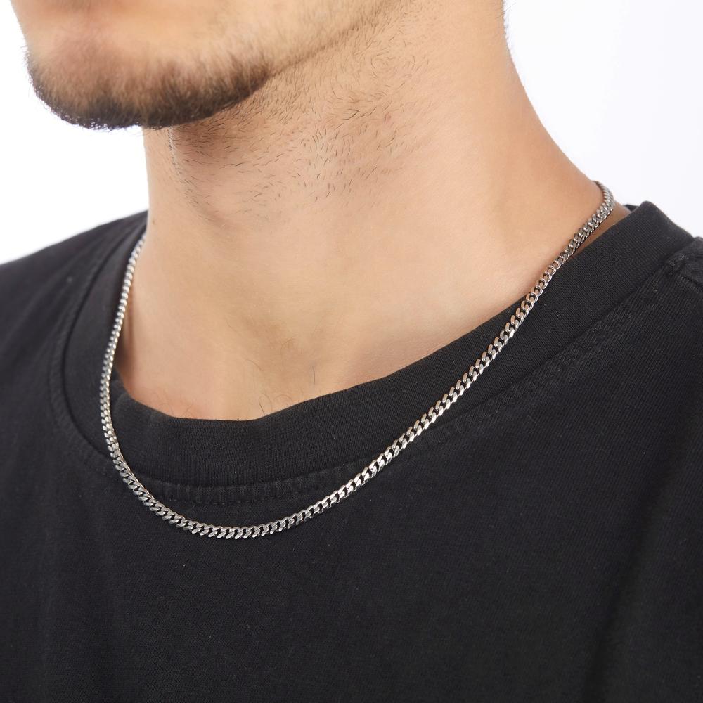 Stilvolle Halskette aus hochwertigem Edelstahl, die durch ihre zeitlose Optik besticht. Robust und langlebig, ideal für den täglichen Gebrauch. Ein klassisches Accessoire, das jedem Outfit einen modernen, maskulinen Akzent verleiht. Perfekt als Geschenk oder zum Selbsttragen.