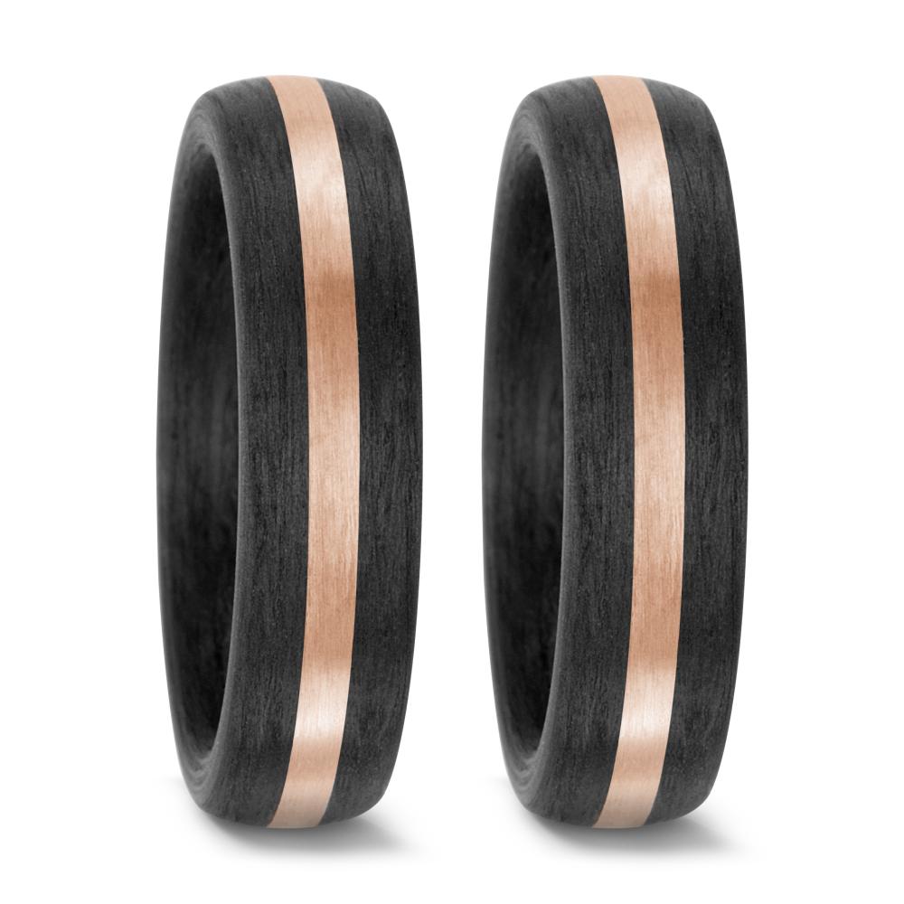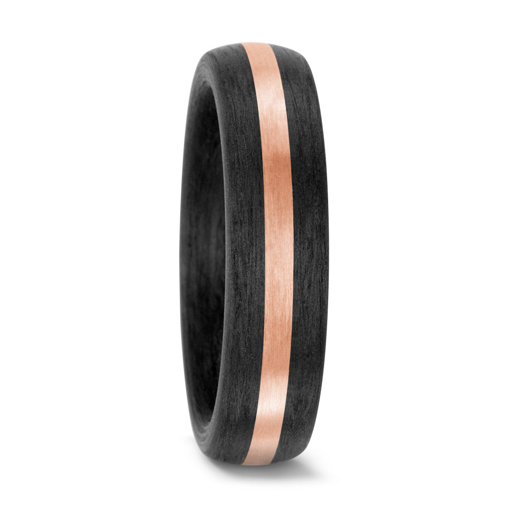 Moderner Partnerring aus edlem 585er Roségold und robustem Carbon. Die elegante Kombination aus warmem Roségold-Streifen und mattem Schwarz verleiht diesem Ring einen einzigartigen, stilvollen Look – perfekt für Paare, die zeitlose Eleganz und Trendbewusstsein verbinden möchten.