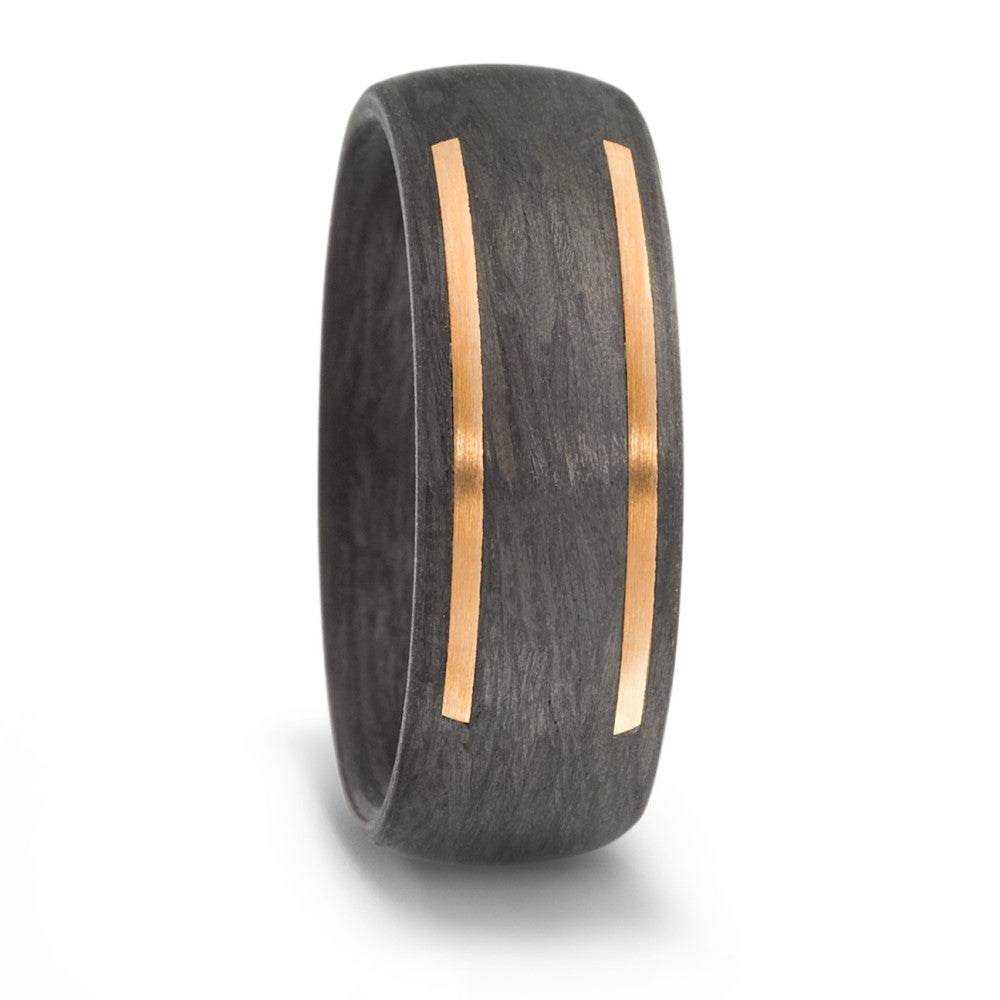 Eleganter Partnerring aus 585er Roségold und Carbon. Der moderne Ring vereint das warme Roségold mit dem markanten Schwarz des Carbons zu einem aussergewöhnlichen Design. Perfekt für Paare, die stilvolle und individuelle Schmuckstücke lieben.