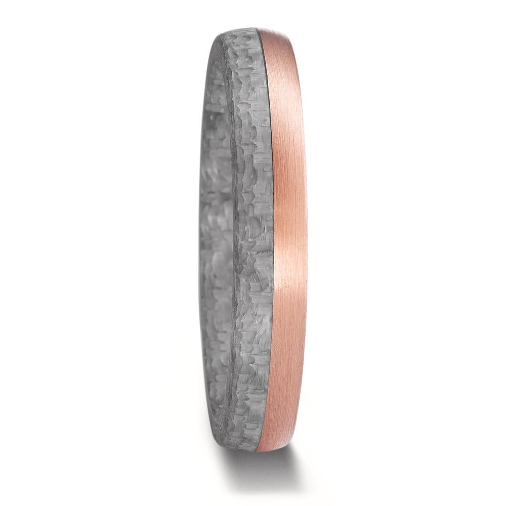 Moderner Partnerring aus 585er Roségold und innovativem Carbon. Die Kombination aus warmem Roségold und strukturiertem Carbon verleiht dem Ring eine elegante, zugleich sportliche Note – perfekt für Paare, die Einzigartigkeit und Stil vereinen wollen.