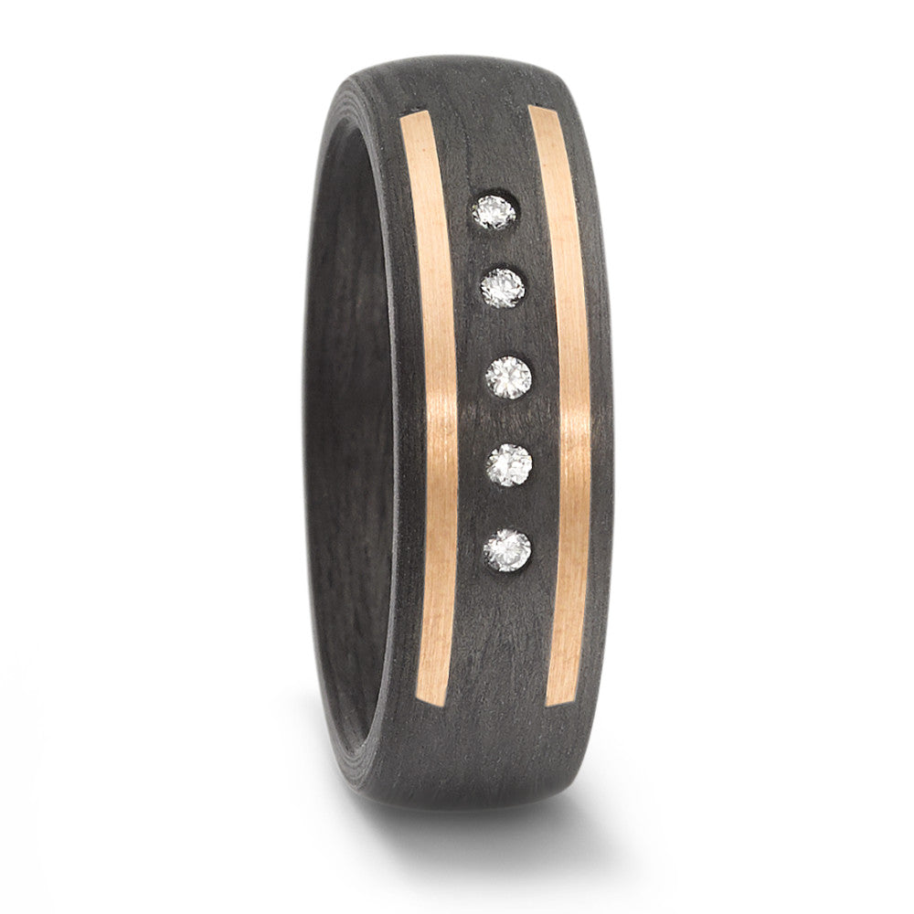 Eleganter Damen-Partnerring aus hochwertigem 585er Roségold und modernem Carbon. Verziert mit fünf funkelnden Diamanten, vereint er zeitlose Eleganz und innovatives Design – perfekt für besondere Momente und ein Zeichen ewiger Verbundenheit.