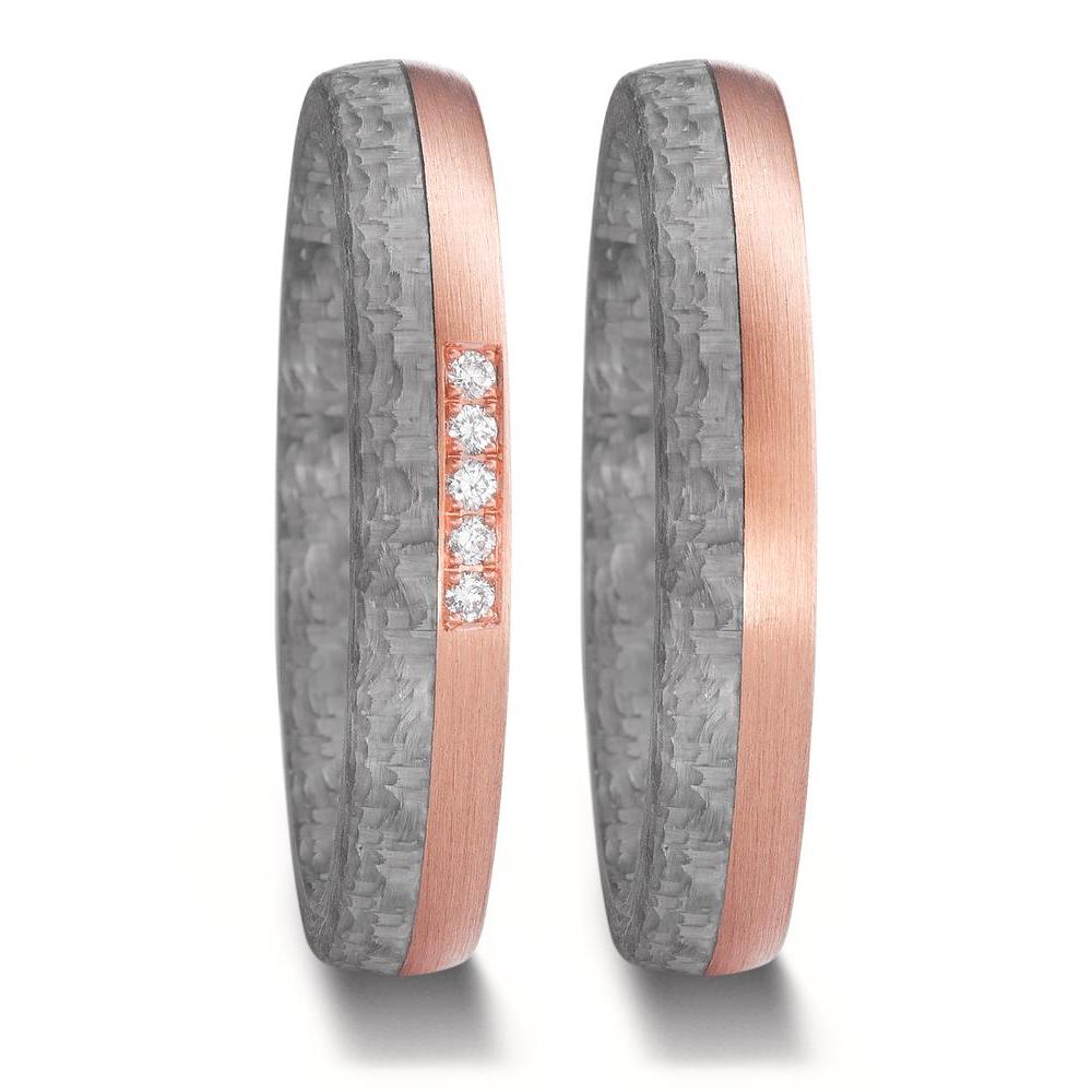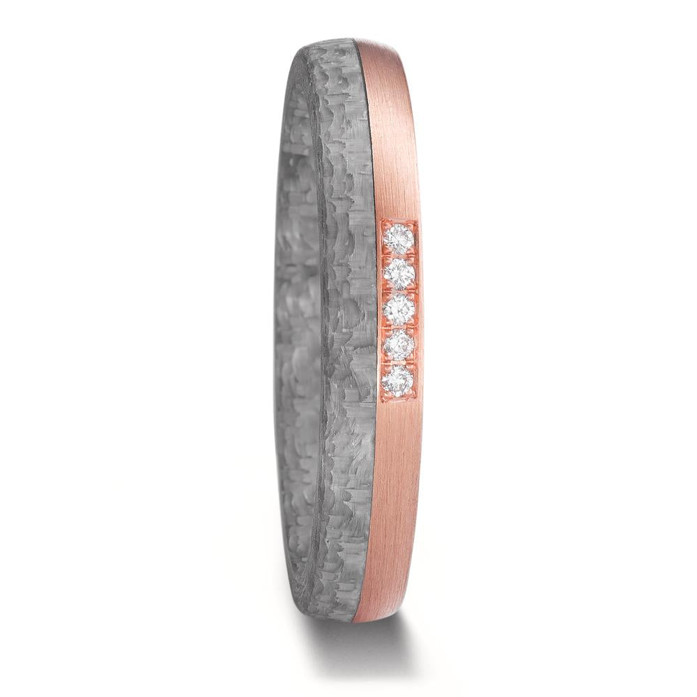 Partnerring 585/14 K Rosegold, Carbon Diamant 0.05 ct, 5 Steine, w-si
