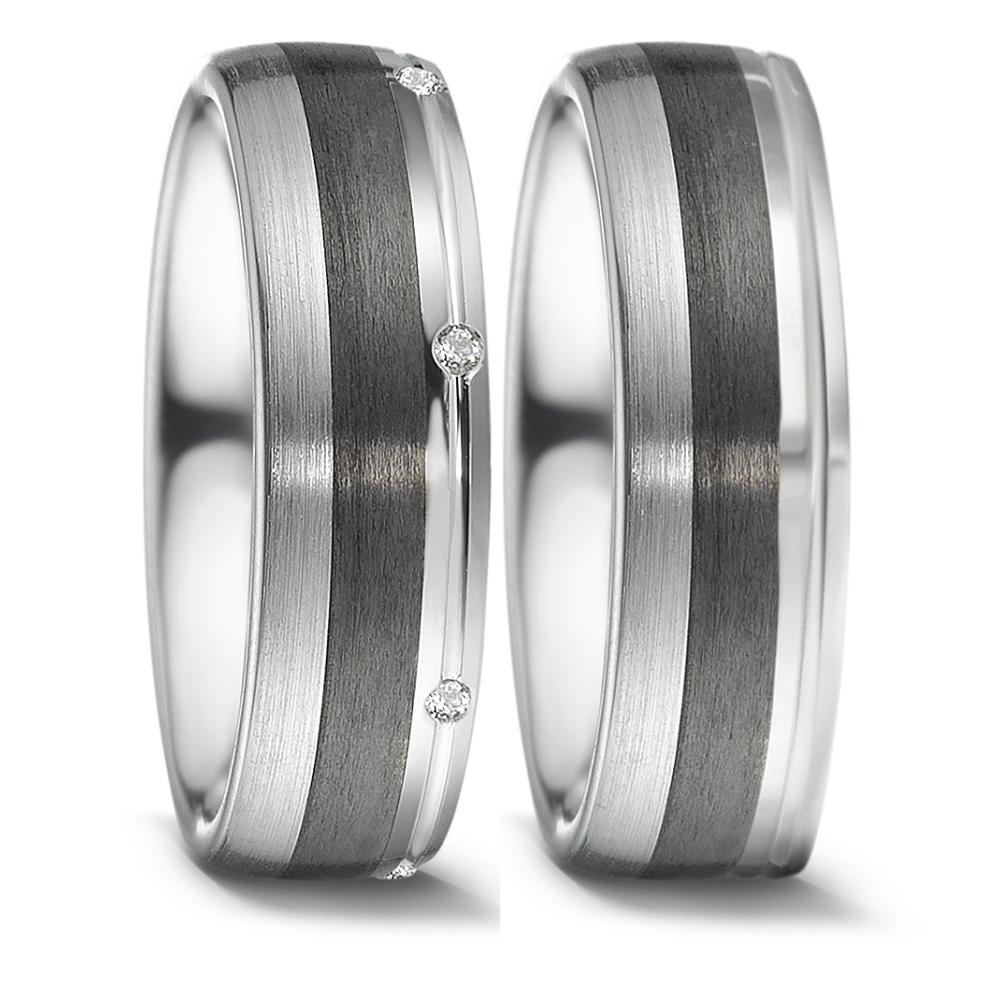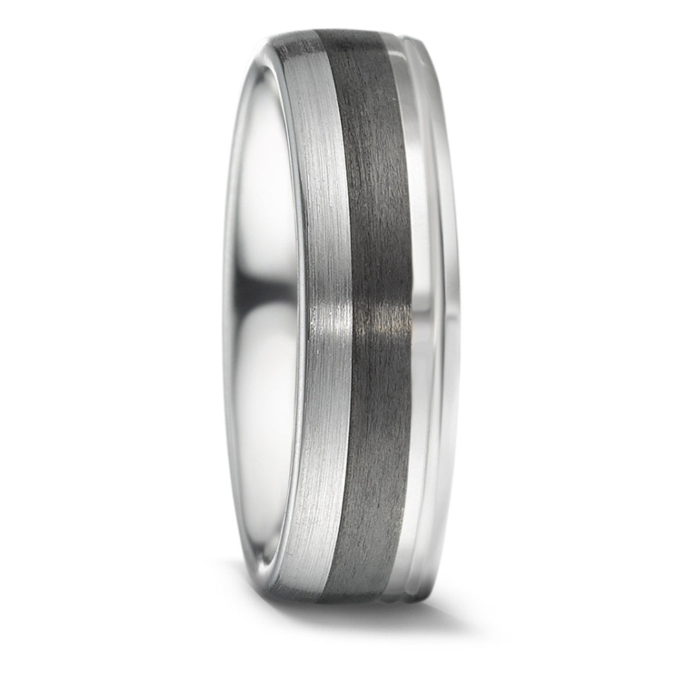 Eleganter Partnerring aus 585er Weissgold mit markantem Carbon-Einsatz. Das moderne Design vereint edle Materialien und sorgt für einen stilvollen und zeitlosen Look. Perfekt für Paare, die Wert auf Qualität und aussergewöhnliche Optik legen. Robust und dennoch elegant!