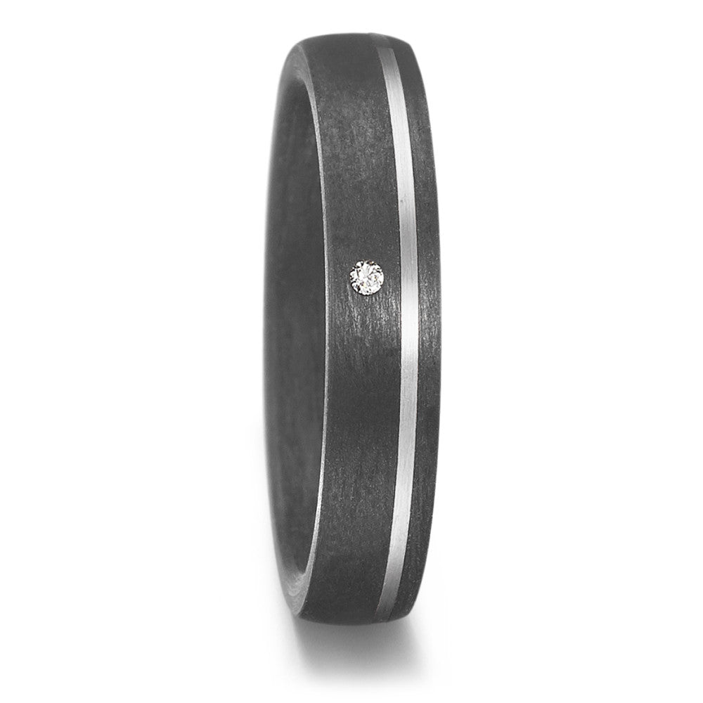 Moderner Partnerring aus 585 Weissgold und Carbon. Das edle Design vereint die zeitlose Eleganz von Weissgold mit der sportlichen Note des schwarzen Carbons. Ein kleiner Diamant verleiht dem Ring einen dezenten, funkelnden Akzent – perfekt für Paare, die das Besondere lieben.