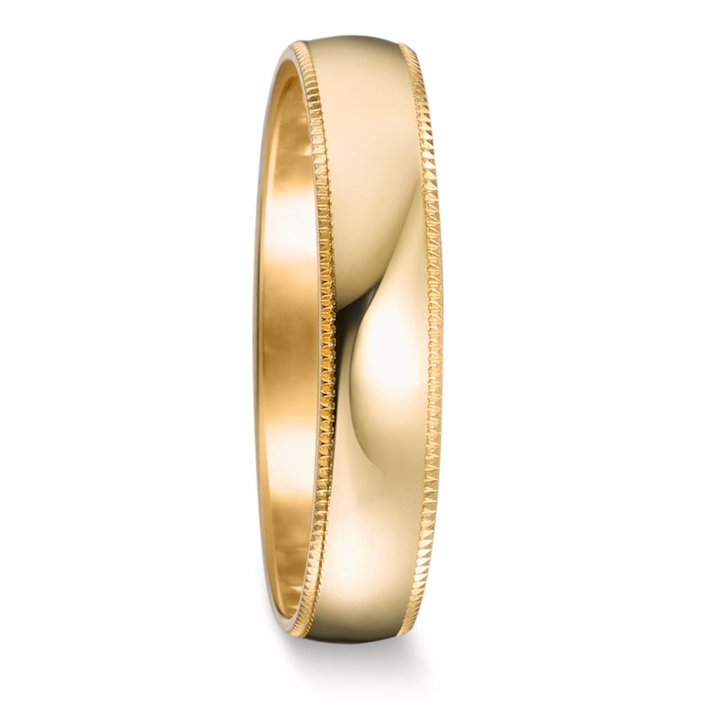 Eleganter Partnerring aus hochwertigem 750er Gelbgold. Mit feinen Rillen an den Kanten veredelt, überzeugt dieser klassische Ring durch zeitlose Schönheit und angenehmen Tragekomfort – ein perfektes Symbol für Ihre gemeinsame Verbundenheit.
