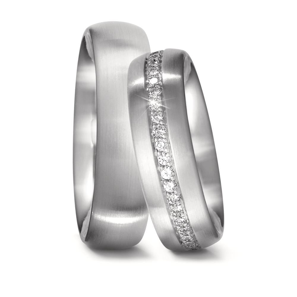 Schlichter und eleganter Partnerring aus 750er Weissgold. Die matte Oberfläche verleiht dem Ring einen modernen, zeitlosen Look. Perfekt für Paare, die schlichte und hochwertige Trauringe suchen, die täglich getragen werden können. Komfortabler Sitz garantiert.