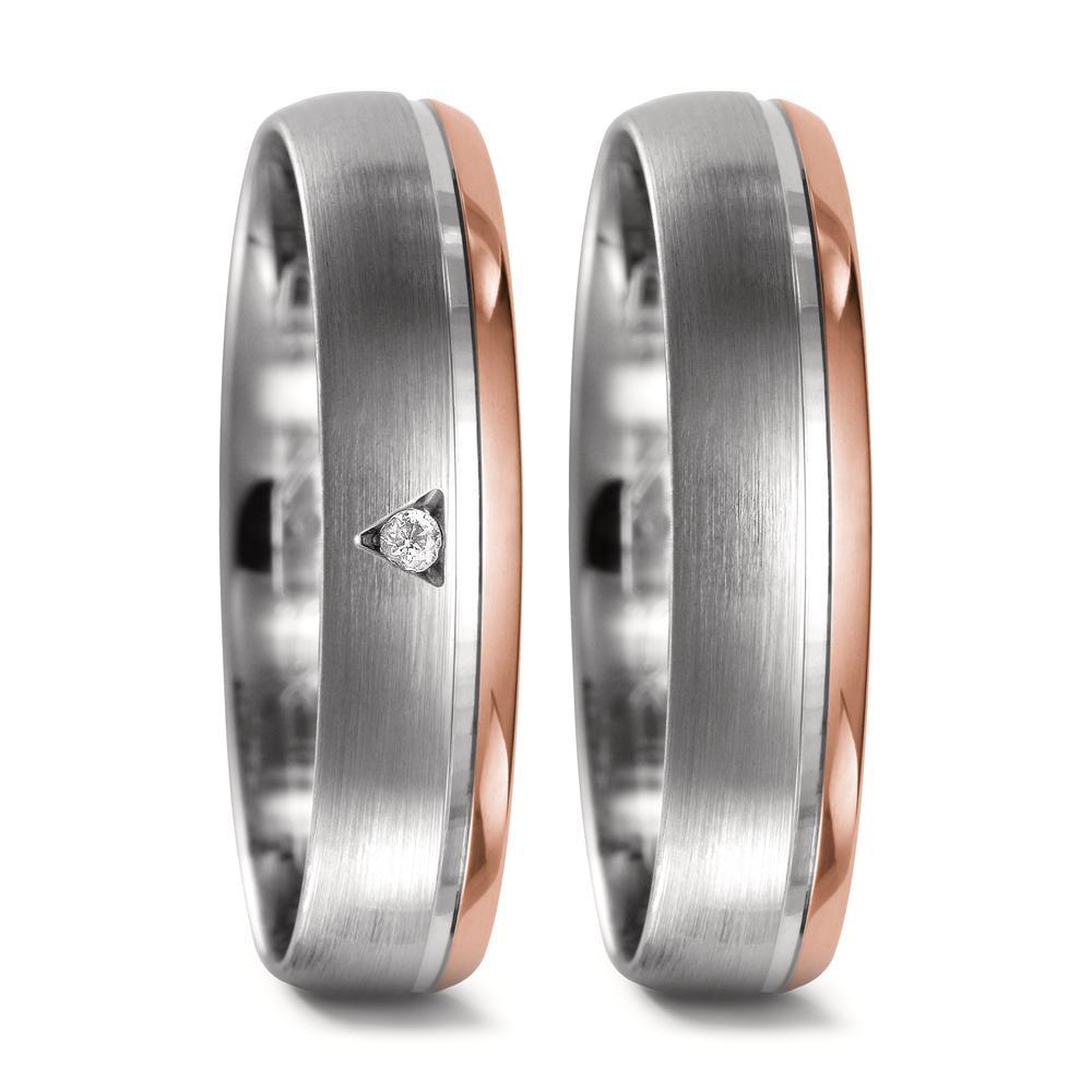Partnerring 750/18 K Weissgold, 750/18 K Rotgold Diamant 0.015 ct, tw-vsi