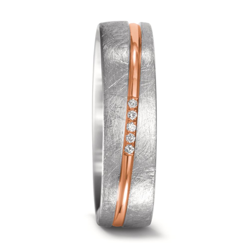 Partnerring 750/18 K Weissgold, 750/18 K Rotgold Diamant 0.025 ct, 5 Steine, w-si
