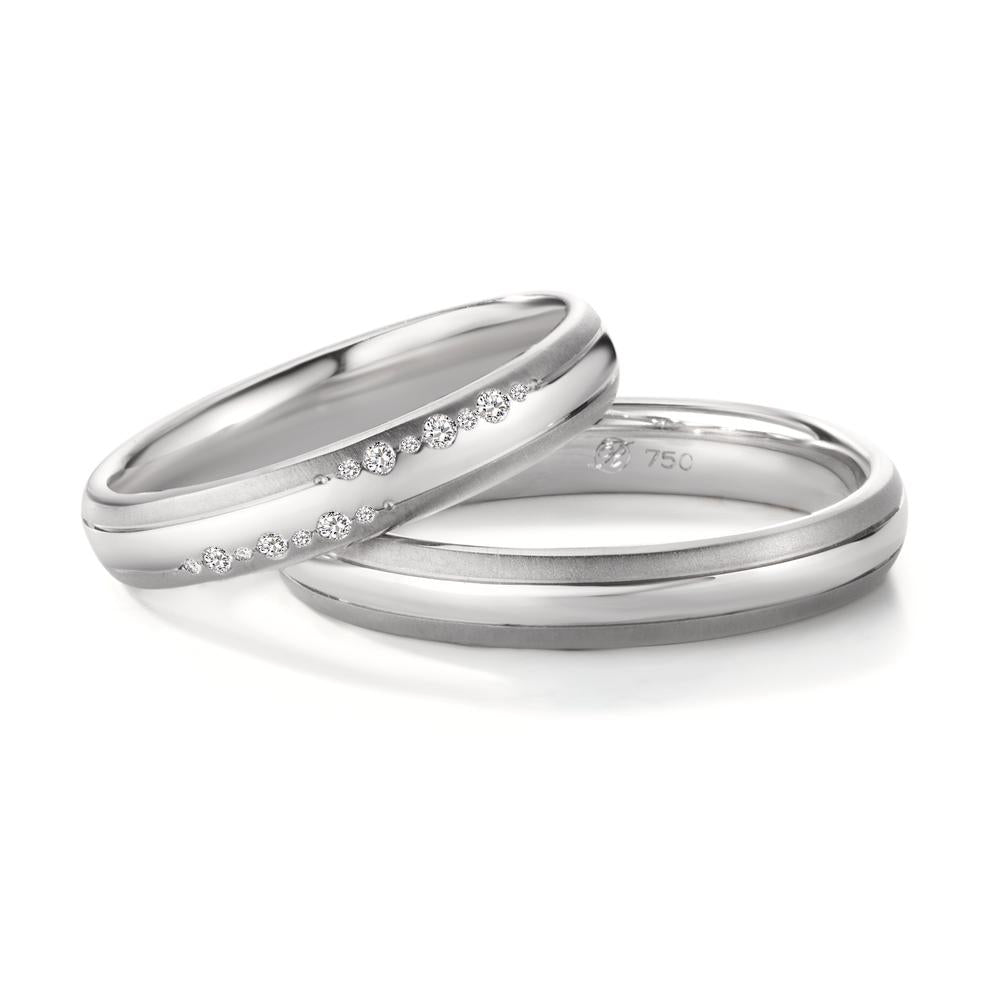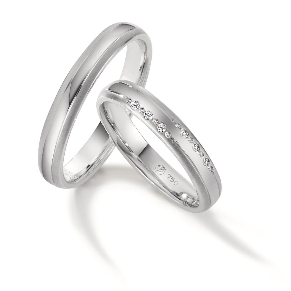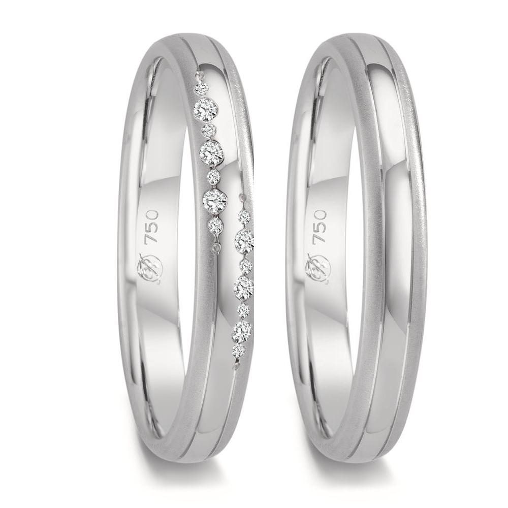 Partnerring 750/18 K Weissgold Diamant 0.064 ct, 14 Steine, w-vsi