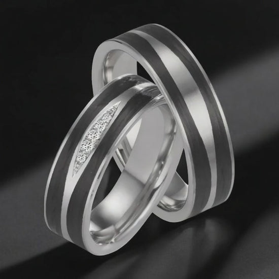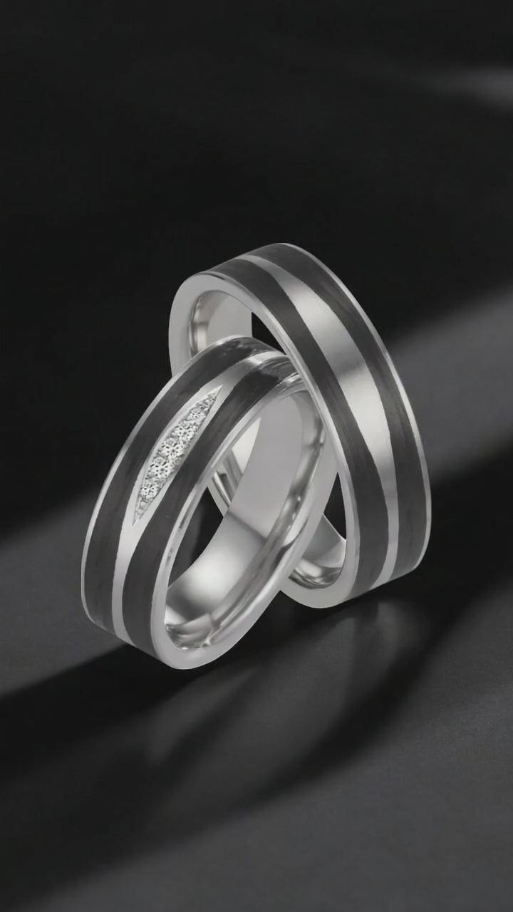 Eleganter Partnerring aus 950er Platin mit stylischen Carbon-Einlagen. Die Kombination aus edlem Platinum und modernem Carbon sorgt für ein einzigartiges Design, das zeitlos und gleichzeitig trendbewusst ist – perfekt für besondere Verbindungen. Hochwertige Verarbeitung garantiert.