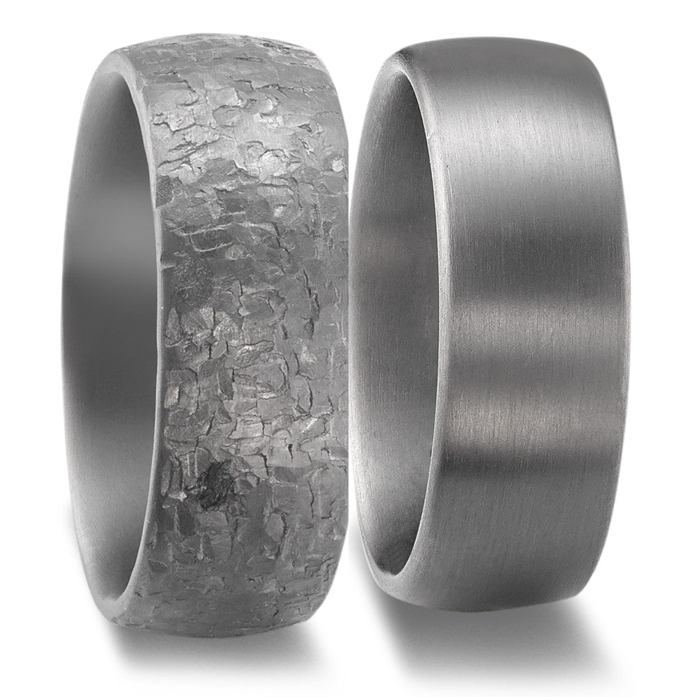 Moderner Partnerring aus 999er Tantal mit markanter, einzigartiger Struktur. Das matte, dunkle Metall steht für Langlebigkeit und Individualität – perfekt für Paare, die zeitlosen Stil und besondere Materialien schätzen. Ein Statement der Verbundenheit.