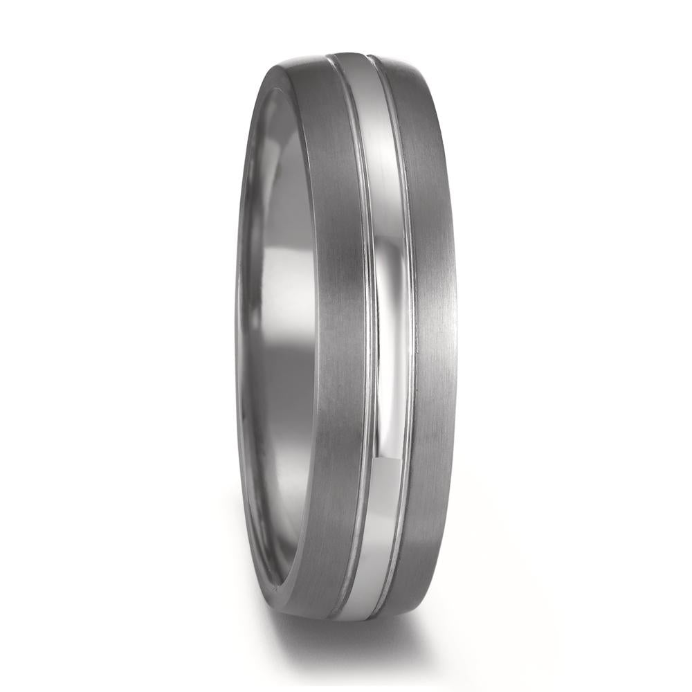 Eleganter Partnerring aus 999 Tantal und 950 Platin vereint moderne Optik mit exklusiver Qualität. Der matte Tantal-Schaft wird durch einen glänzenden Platinstreifen in der Mitte stilvoll akzentuiert. Perfekt für besondere Momente und lebenslange Verbundenheit.