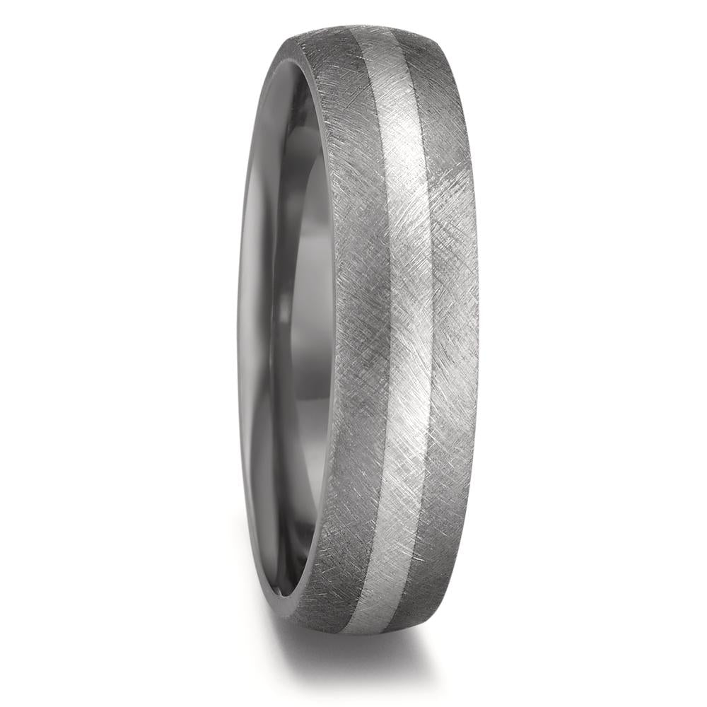 Edler Partnerring aus 999 Tantal mit einer edlen Einlage aus 950 Platin. Die matte Oberfläche und der dezente Glanz der Platinlinie verleihen dem Ring eine einzigartige, moderne Optik. Perfekt für Paare, die zeitlose Eleganz und besondere Materialien schätzen.
