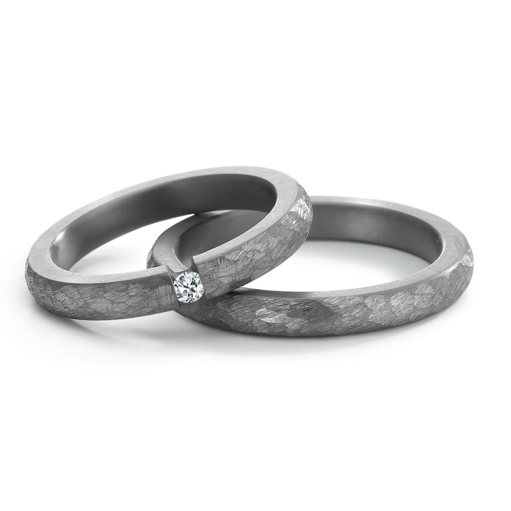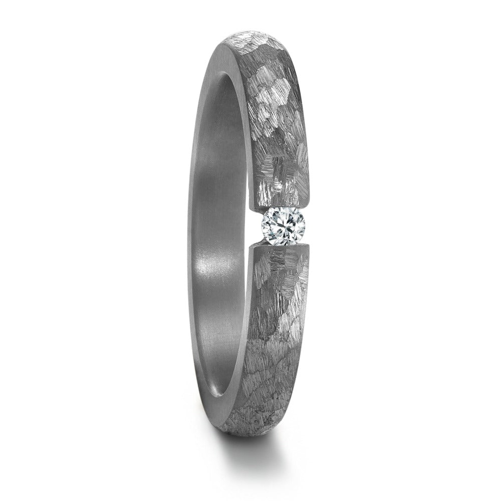 Edler Damen Partnerring aus 999er Tantal mit markanter, facettierter Oberfläche. Der Ring ist mit einem funkelnden Diamanten besetzt, der für zeitlose Eleganz sorgt. Ein hochwertiges Schmuckstück, symbolisiert Liebe und Beständigkeit in stilvollem Design.