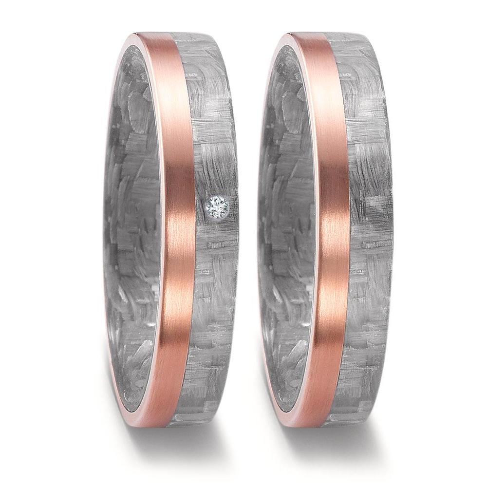 Dieser elegante Partnerring vereint robustes Carbon mit edlem 750er Rotgold. Das moderne Design symbolisiert Verbundenheit und Stil zugleich. Perfekt für Paare, die individuelle und hochwertige Schmuckstücke suchen. Komfortabel, zeitlos und aussergewöhnlich – ein Zeichen für Ihre Liebe.