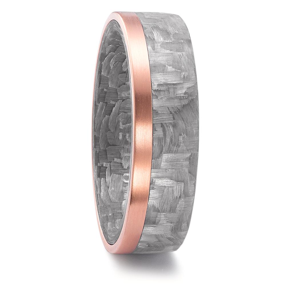 Eleganter Partnerring aus widerstandsfähigem Carbon mit einem edlen Akzent aus 750er Rotgold. Die Kombination aus modernem Carbonmuster und warmem Rotgold schafft einen einzigartigen Look – perfekt für Paare, die Stil und Individualität vereinen möchten.