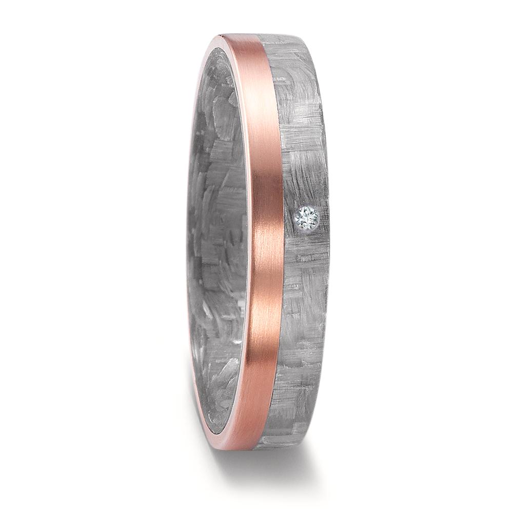 Partnerring Carbon, 750/18 K Rotgold Diamant 0.01 ct, w-si