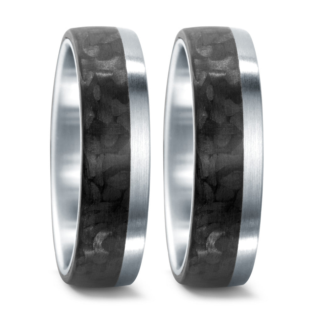 Moderner Partnerring aus hochwertigem Edelstahl kombiniert mit edlem Carbon. Das einzigartige Design vereint Robustheit und Stil, ideal für Paare, die Wert auf zeitlose Eleganz legen. Ein symbolträchtiges Schmuckstück für gemeinsame Momente und die Ewigkeit.