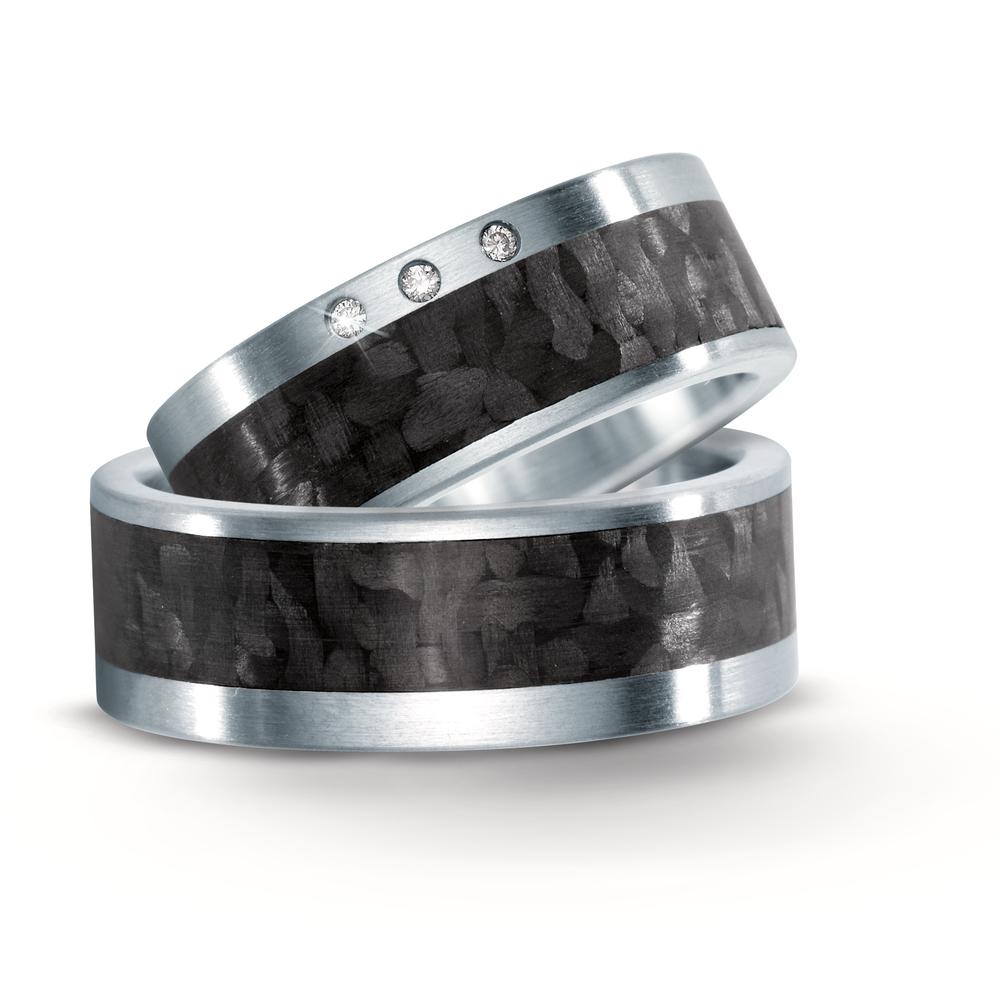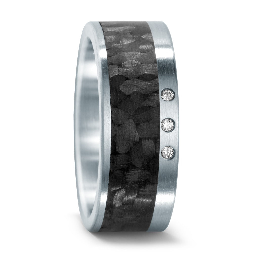 Partnerring Edelstahl, Carbon Diamant 0.03 ct, 3 Steine, w-si