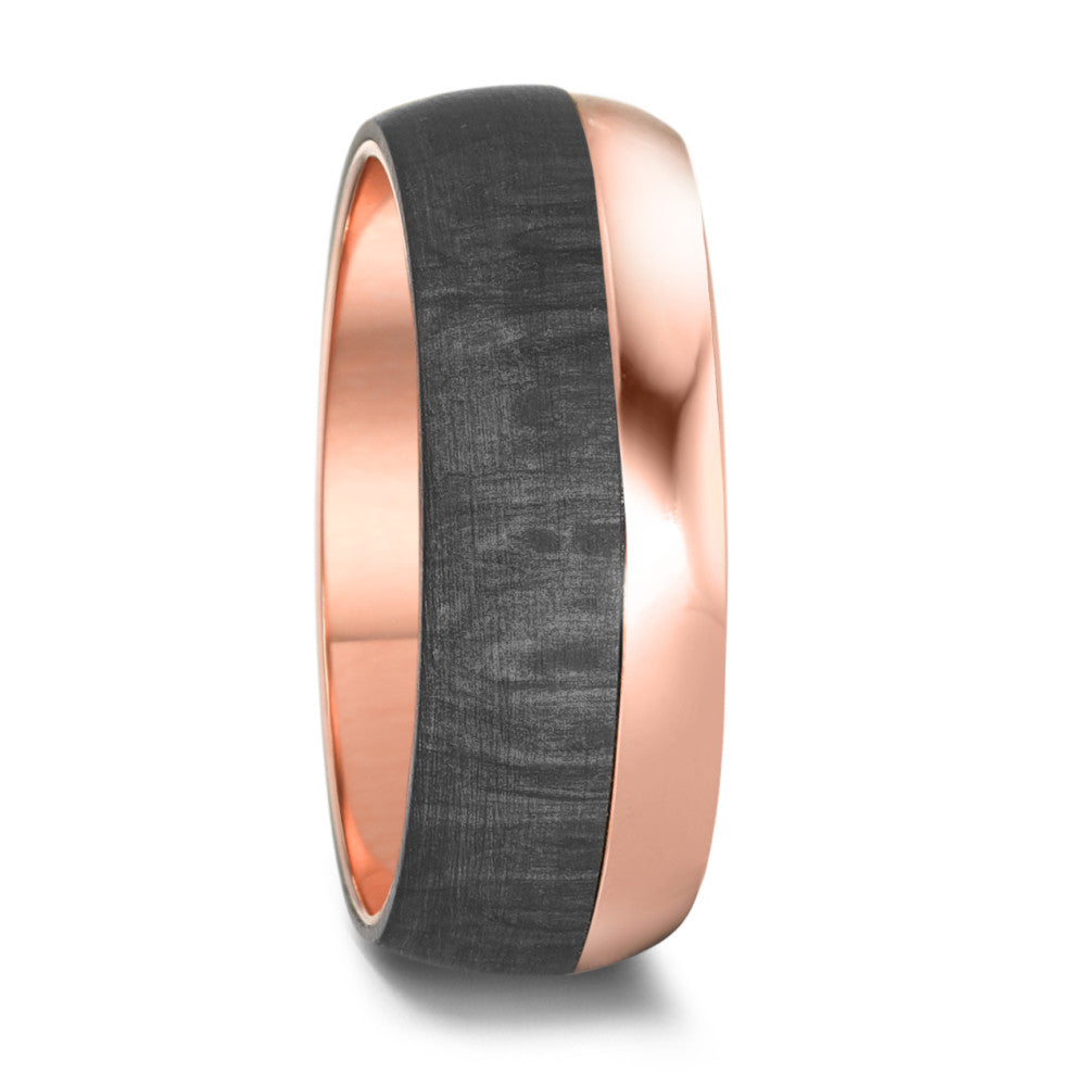 Moderner Partnerring aus hochwertigem Edelstahl mit edlem Carbon-Inlay. Die Kombination aus glänzendem Roségold-Ton und mattem Schwarz verleiht dem Ring einen einzigartigen, stilvollen Look. Perfekt für Paare, die Design und Qualität verbinden möchten.