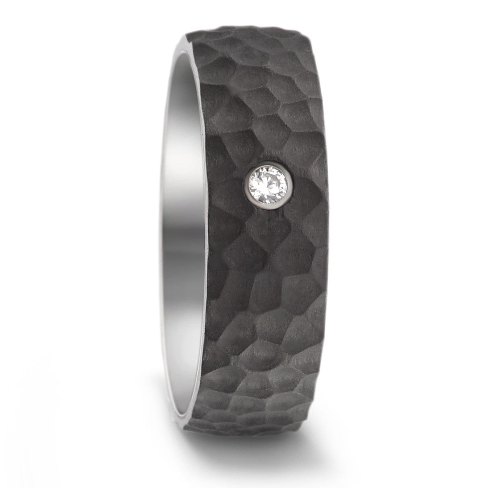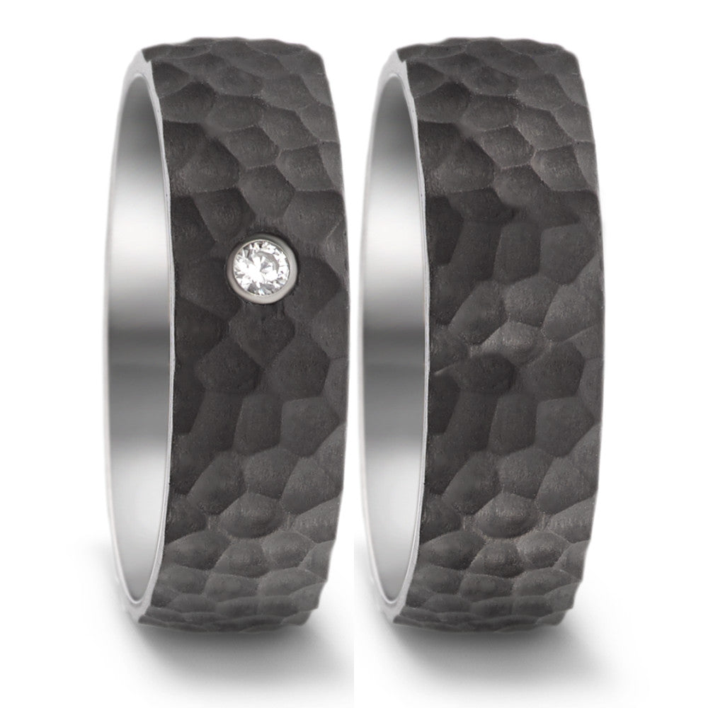 Eleganter Damen-Partnerring aus robustem Edelstahl mit moderner Carbon-Oberfläche in mattem Schwarz. Veredelt wird das Design durch funkelnde Zirkonia, die dem Ring eine edle Note verleihen. Perfekt für alle, die zeitlose, stilvolle Partner-Ringe suchen.