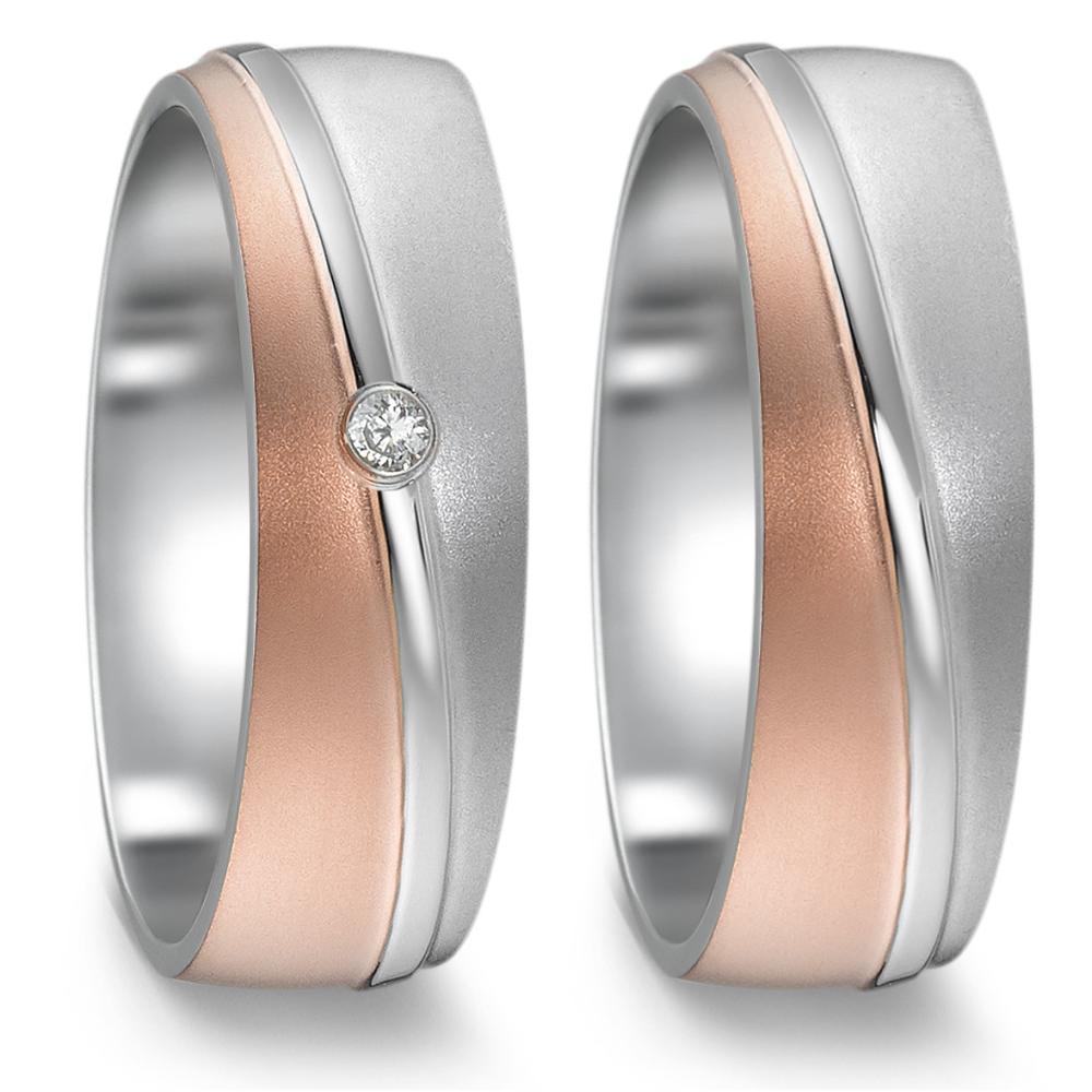 Partnerring Edelstahl Zirkonia bicolor IP beschichtet