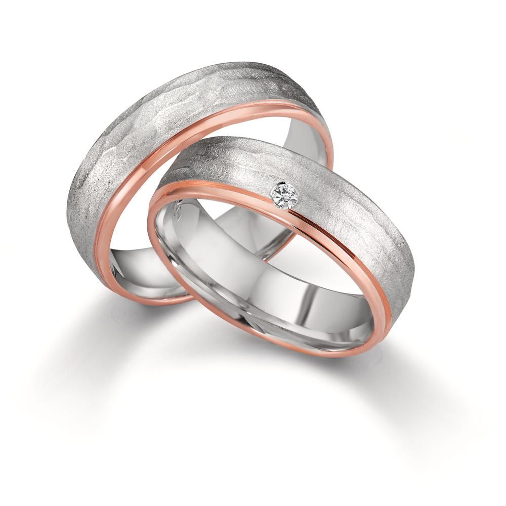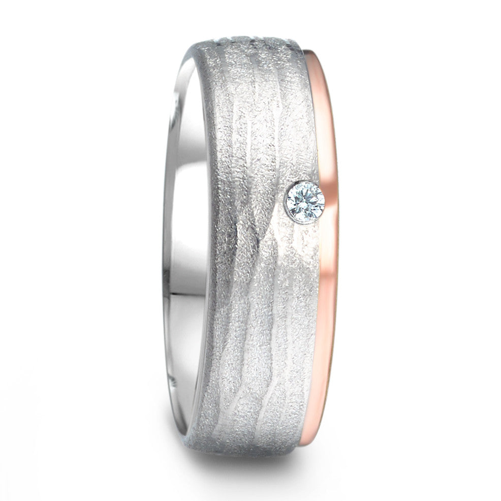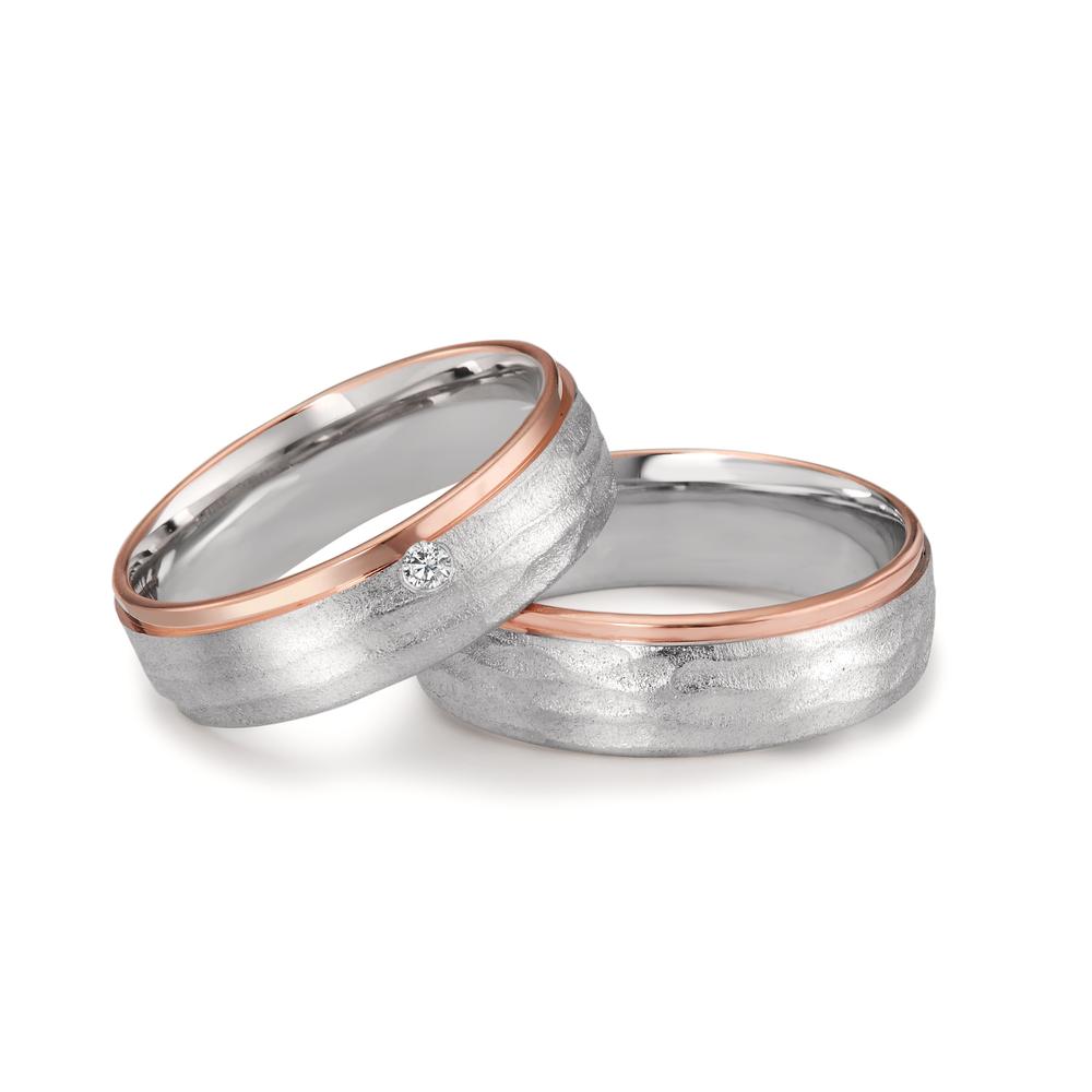 Partnerring Silber, 585/14 K Rosegold Diamant 0.025 ct, w-si rhodiniert