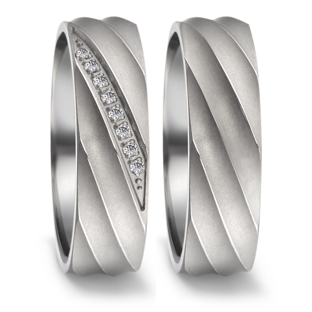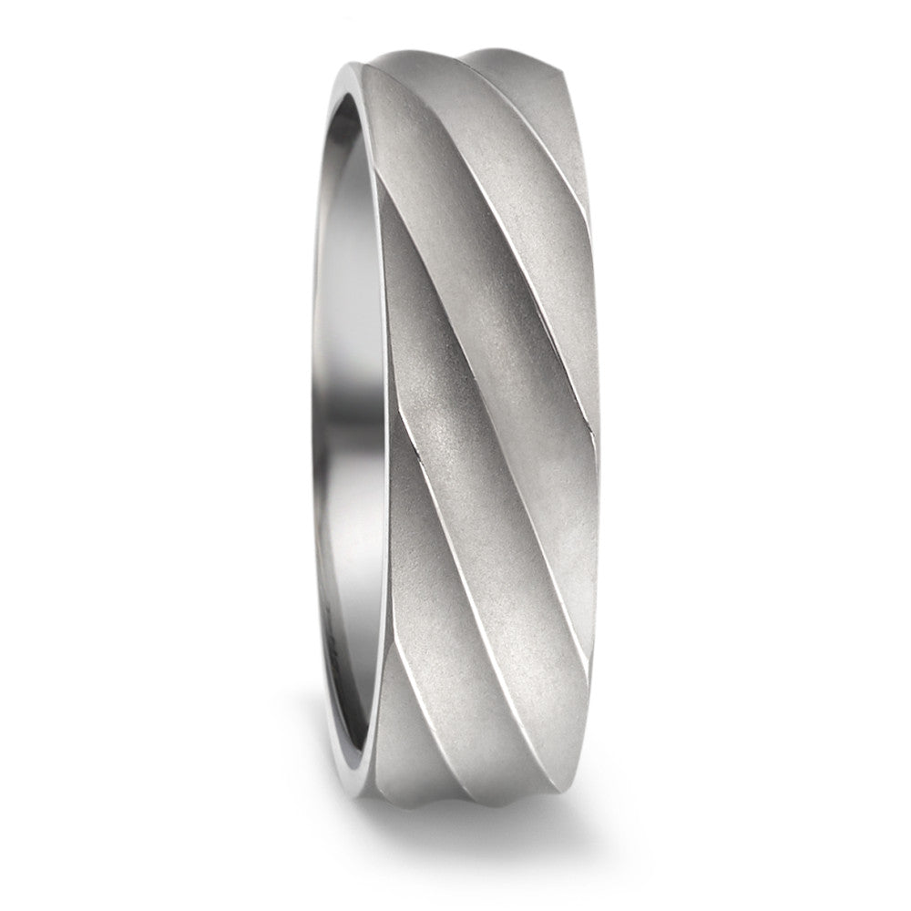 Dieser Partnerring aus hochwertigem Titan besticht durch sein modernes, mattiertes Design mit markanten, schrägen Linien. Titan macht den Ring besonders leicht, robust und hautverträglich – ideal für den täglichen Gebrauch. Ein zeitloses Symbol für Ihre Verbundenheit.