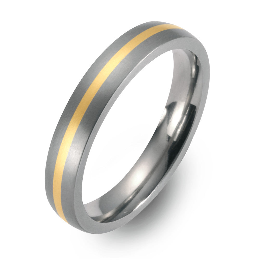 Moderner Partnerring aus hochwertigem Titan mit edlem 750er Gelbgold-Akzent. Die Kombination aus langlebigem Titan und warmem Gelbgold macht diesen Ring besonders robust und stilvoll. Perfekt für Paare, die zeitlose Eleganz und Qualität schätzen. Komfortabel und individuell.