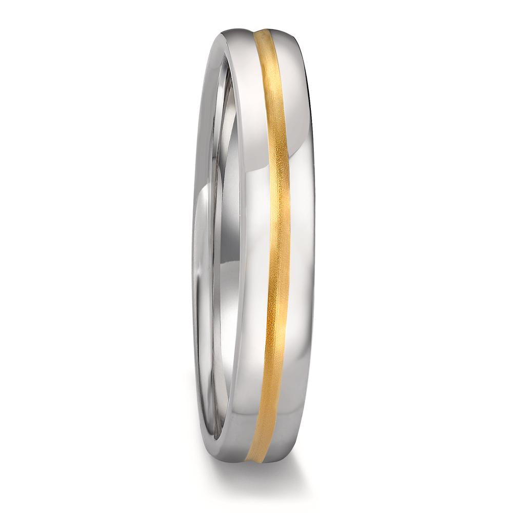 Eleganter Partnerring aus robustem Titan mit feinem 750er Gelbgold-Einleger. Die Kombination aus mattiertem Gelbgold und glänzendem Titan verleiht dem Ring eine moderne, edle Optik. Ideal für Paare, die Wert auf Qualität und Stil legen.
