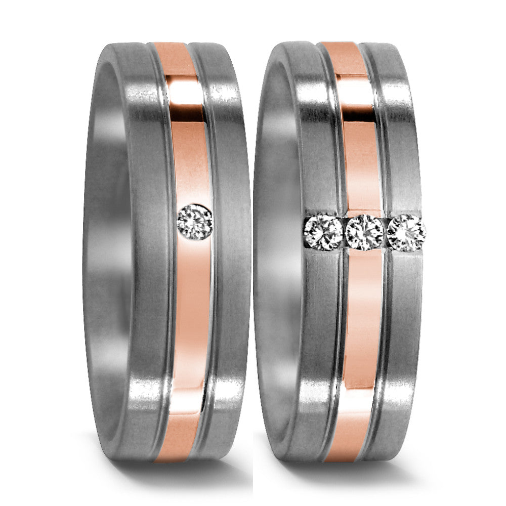 Partnerring Titan, 750/18 K Rotgold Diamant 0.06 ct, 3 Steine, w-si