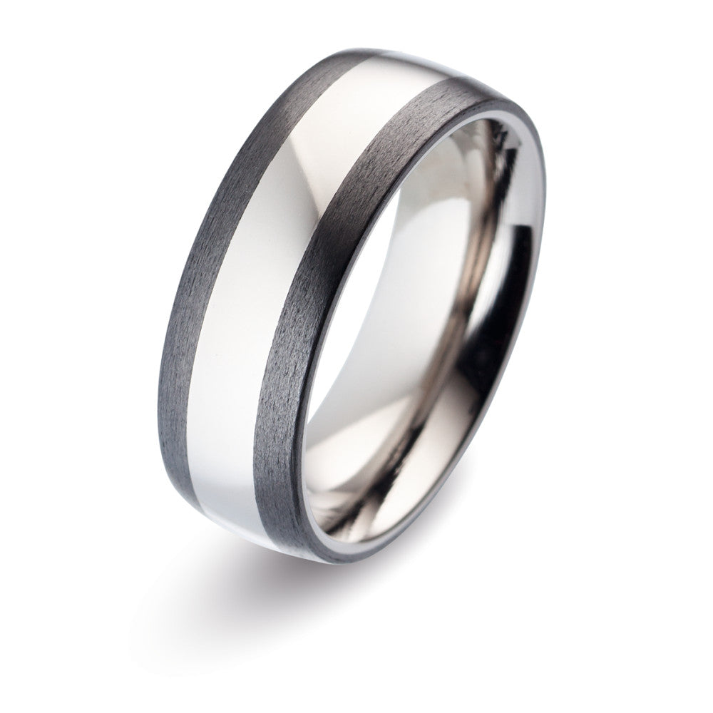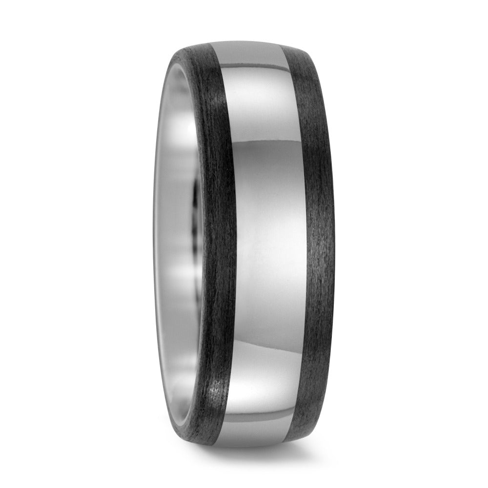 Moderner Partnerring aus widerstandsfähigem Titan mit elegantem Carbon-Inlay. Die Kombination aus glänzendem Titan und mattem Carbon verleiht diesem Ring einen stilvollen, zeitgemässen Look. Leicht, langlebig und perfekt für Paare, die Wert auf Design und Qualität legen.