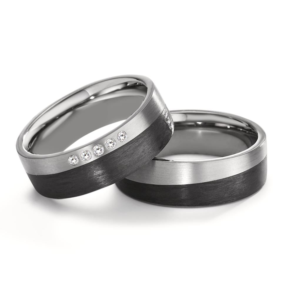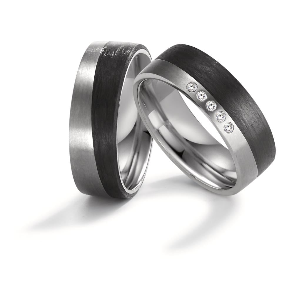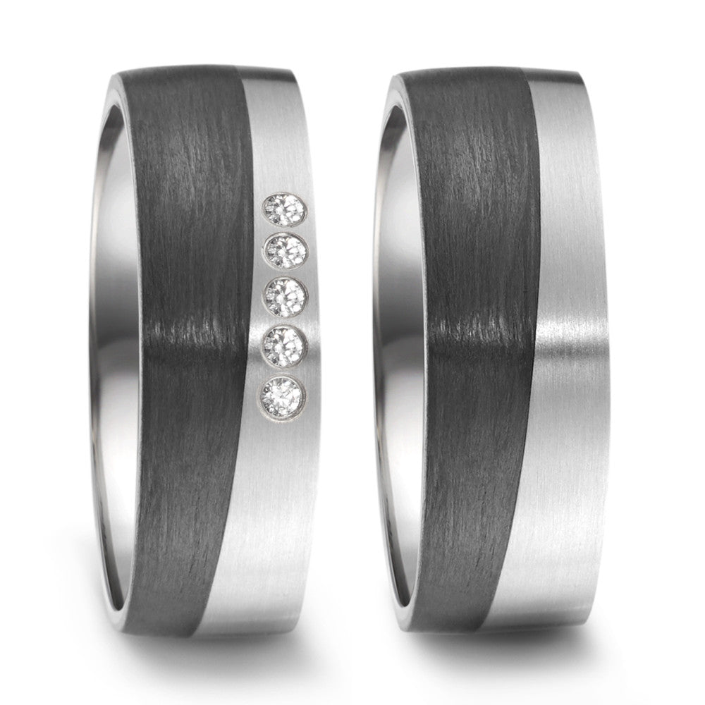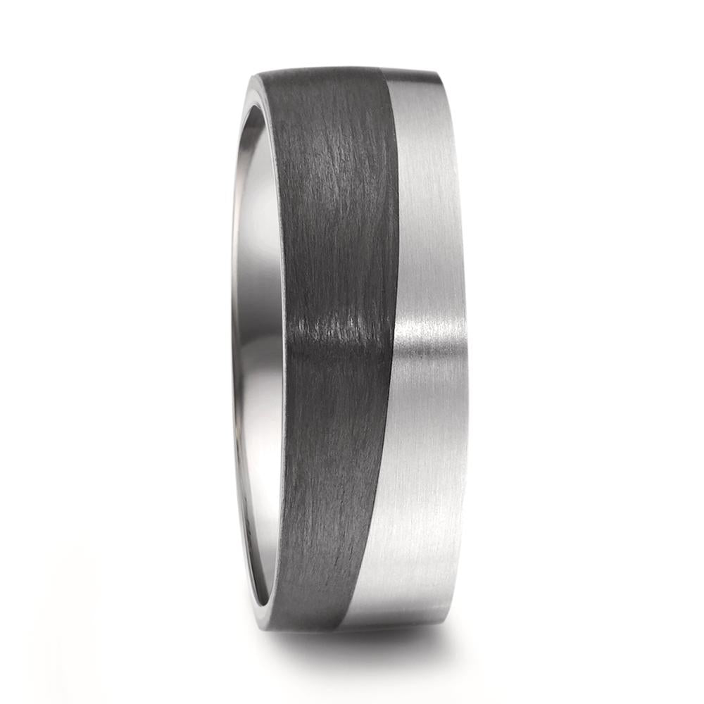 Moderner Partnerring aus hochwertigem Titan kombiniert mit edlem Carbon. Der Ring besticht durch sein einzigartiges Design mit einer mattierten Oberfläche und einer eleganten Farbgebung in Schwarz und Silber. Perfekt für Paare, die Wert auf Stil und Langlebigkeit legen.