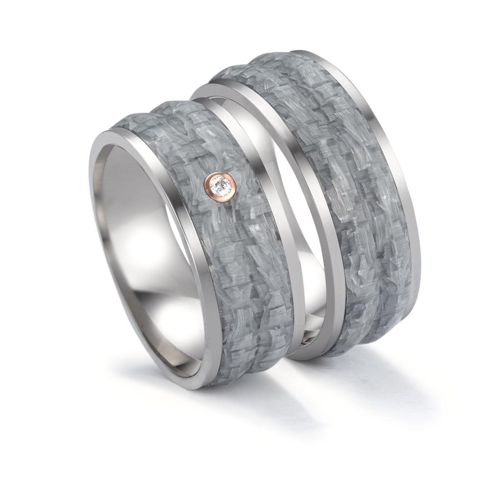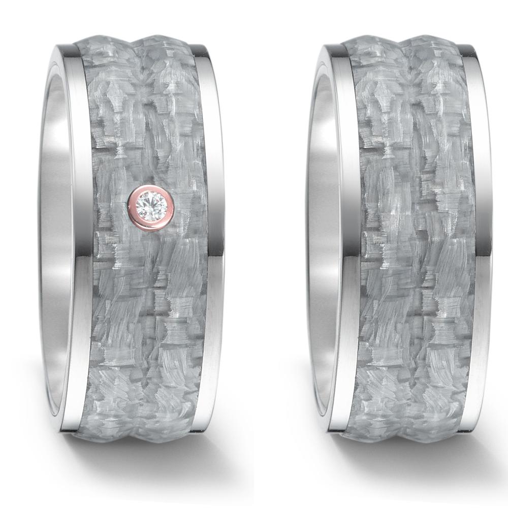 Partnerring Titan, Carbon, 750/18 K Rotgold Diamant 0.02 ct, w-si