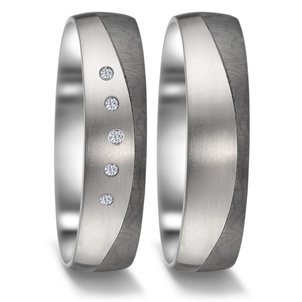 Partnerring Titan, Carbon Diamant 0.025 ct, 5 Steine, w-si