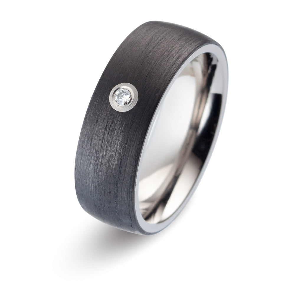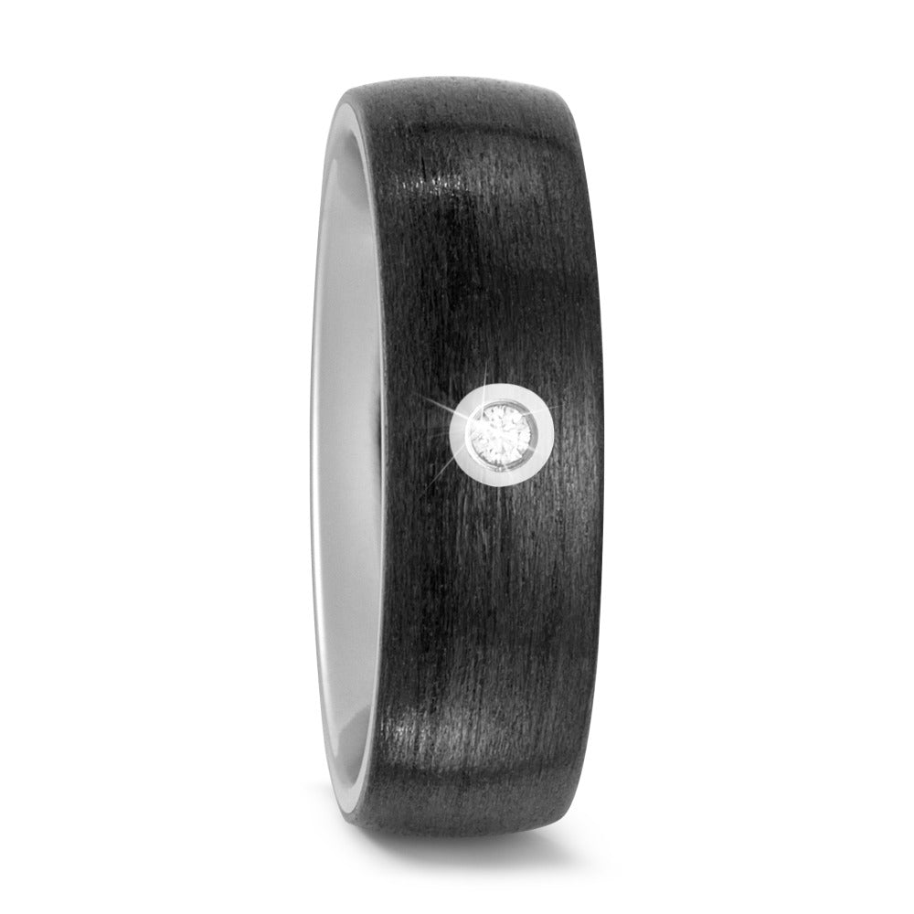 Eleganter Damen-Partnerring aus robustem Titan mit moderner Carbon-Oberfläche. Der Ring ist mattiert und setzt durch einen funkelnden Diamanten ein strahlendes Highlight. Perfekt für Paare, die Wert auf Design und Langlebigkeit legen.zeitlos schön und angenehm zu tragen.