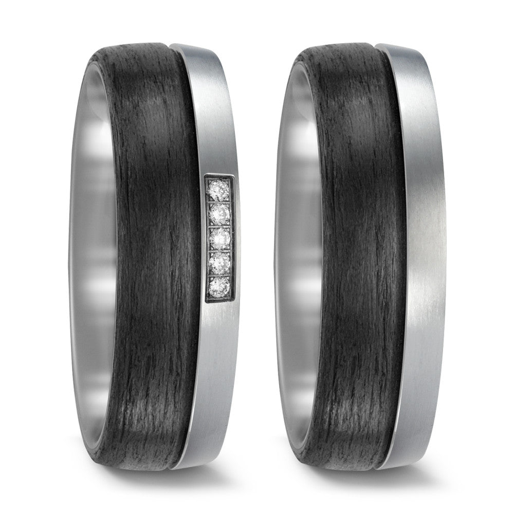Partnerring Titan, Carbon Diamant 0.05 ct, 5 Steine, w-si