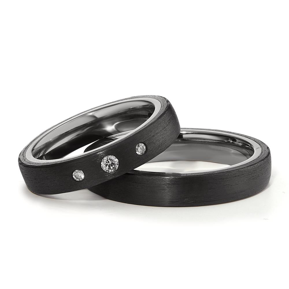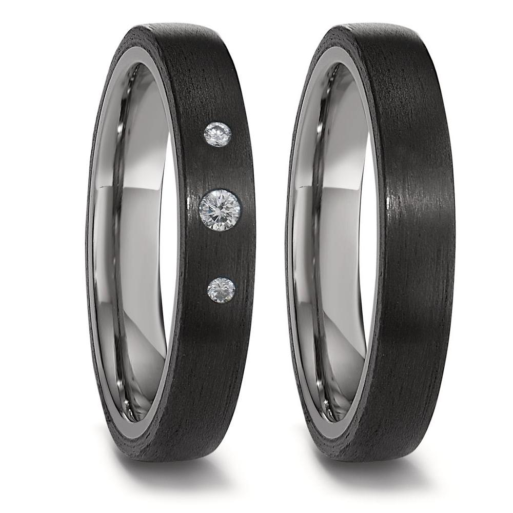 Partnerring Titan, Carbon Diamant 0.09 ct, 3 Steine, w-si