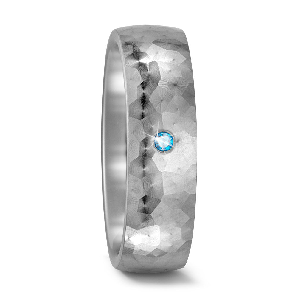 Eleganter Damen-Partnerring aus hochwertigem Titan mit matt gehämmerter Oberfläche. Veredelt wird der Ring durch einen funkelnden blauen Diamanten, der das zeitlose Design perfekt ergänzt. Leicht, robust und ideal für den täglichen Tragekomfort.