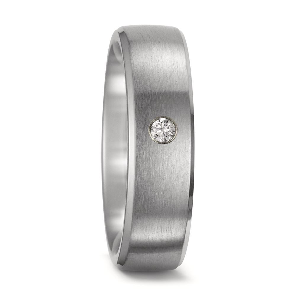 Eleganter Damen-Partnerring aus robustem Titan mit edlem, mattiertem Finish. Ein funkelnder Diamant in der Mitte verleiht dem Ring zeitlose Schönheit und symbolisiert die einzigartige Verbindung. Perfekt für Paare, die Wert auf Stil und Beständigkeit legen.
