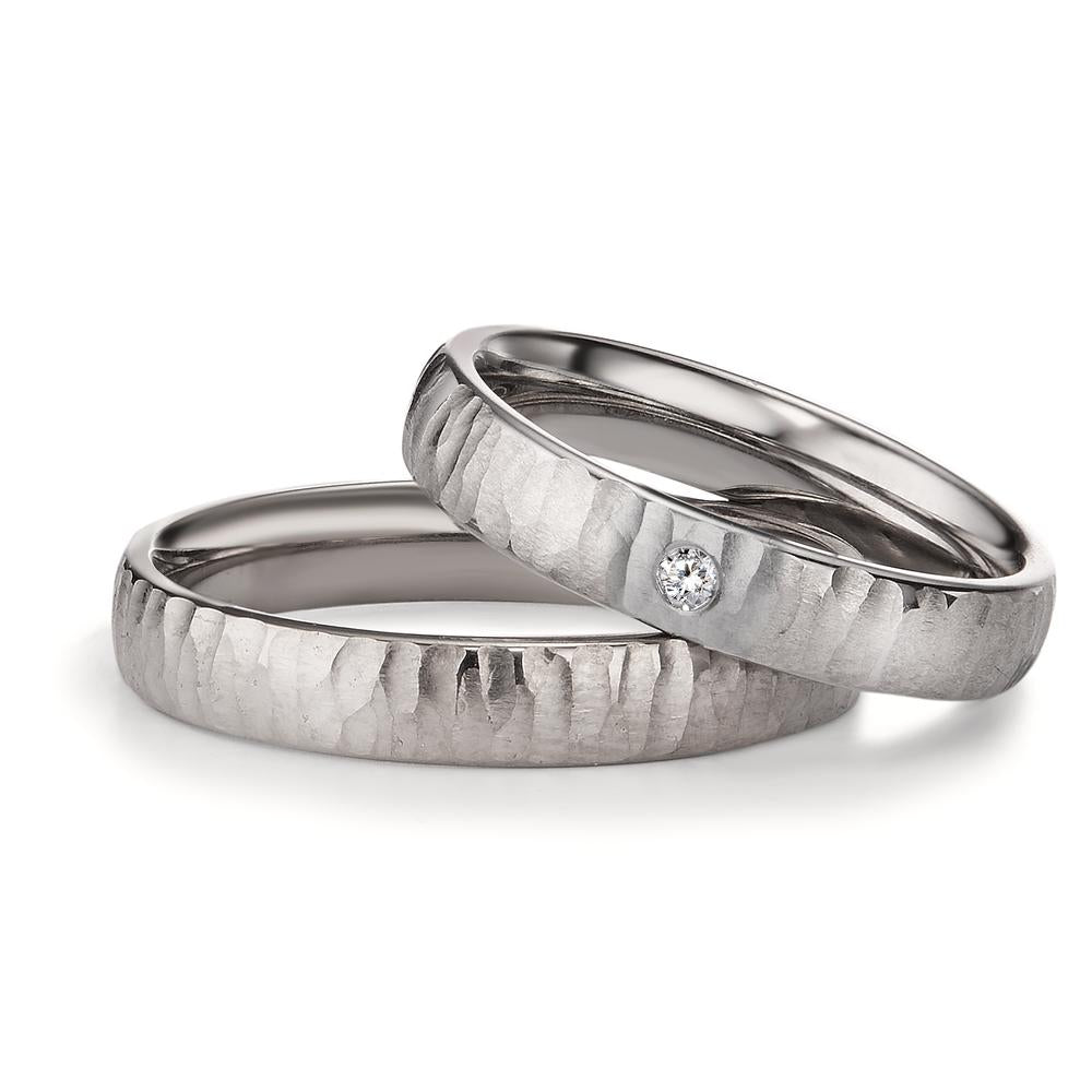Eleganter Damen-Partnerring aus robustem Titan mit einer markanten Hammerschlag-Optik. Dezenter, funkelnder Diamant in der Fassung setzt einen edlen Akzent. Ein zeitloses Schmuckstück, das Stil und Beständigkeit perfekt vereint. Ideal für besondere Momente.