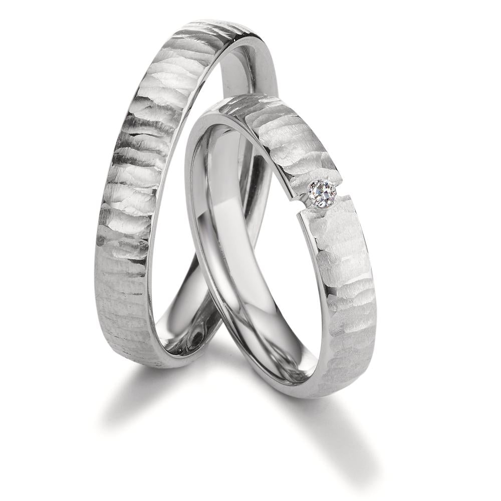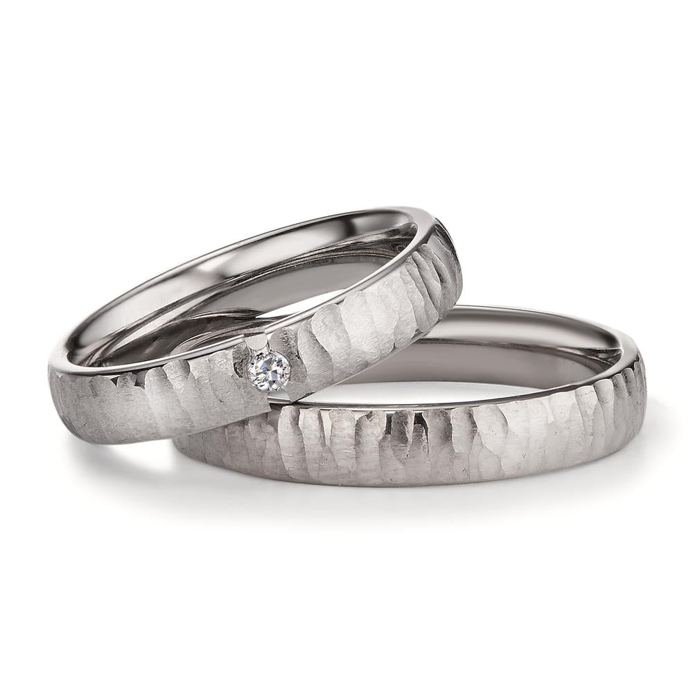 Eleganter Damen-Partnerring aus robustem Titan mit moderner Hammerschlag-Optik. Ein funkelnder Diamant in der Mitte setzt einen edlen Akzent. Perfekt für einzigartige Momente und symbolisiert Verbundenheit mit Stil und zeitloser Eleganz.