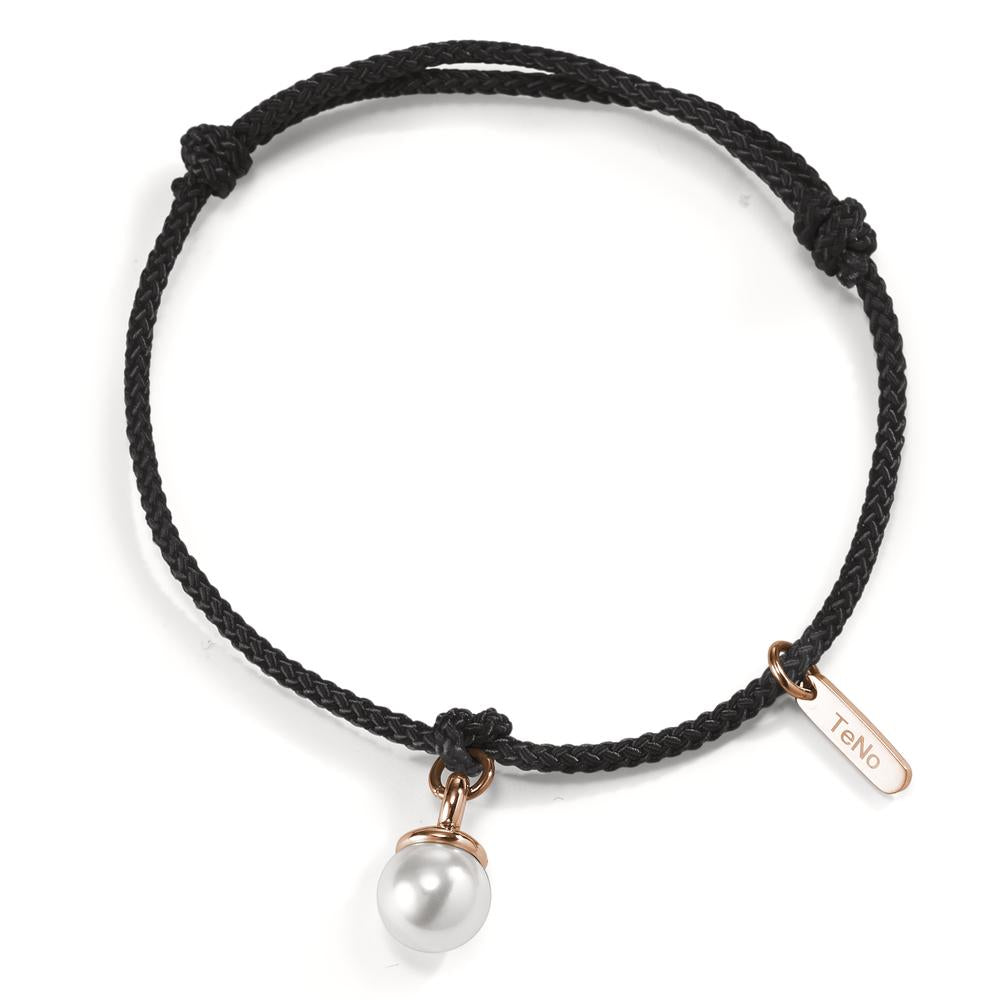 Pearl Drop Armband Rosé - Schwarz mit Muschelperle Ø7 mm, 16-21cm verstellbar