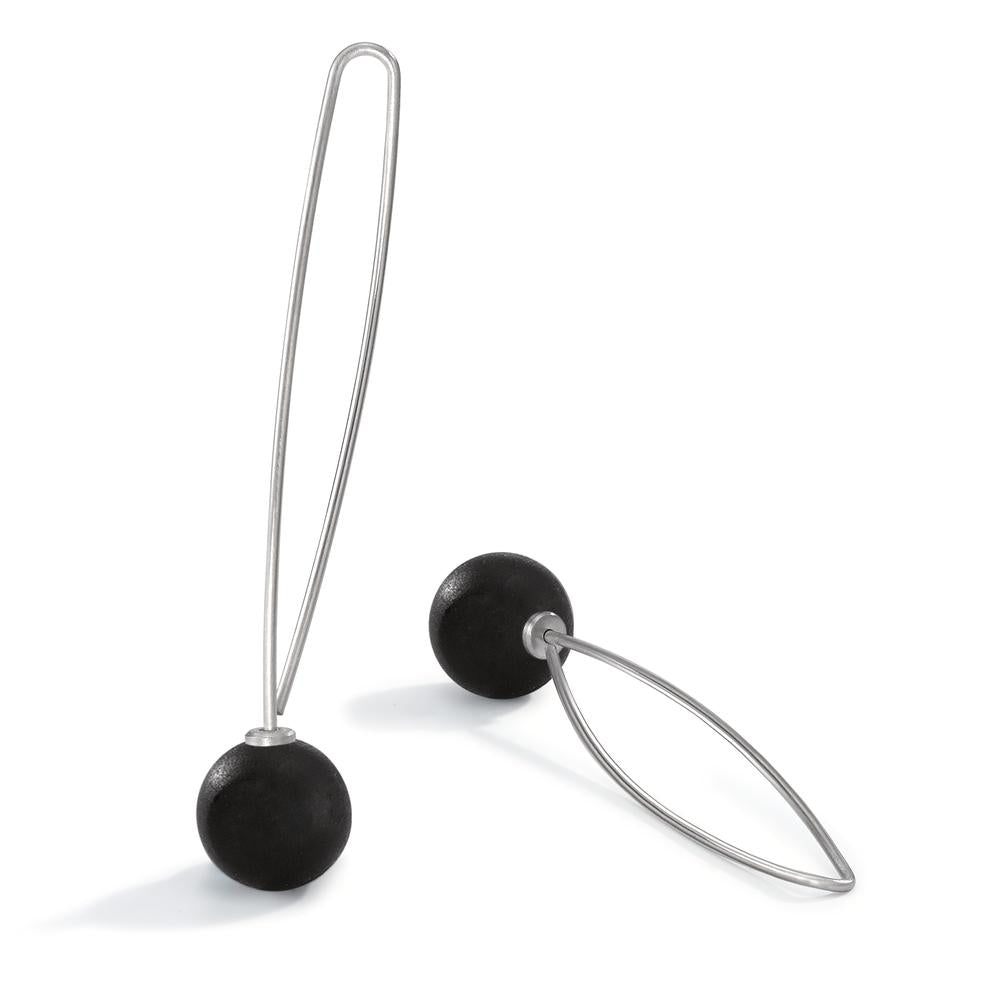 Pendel-Ohrhänger TeNo Globe aus Carbon und Edelstahl, Ø9mm