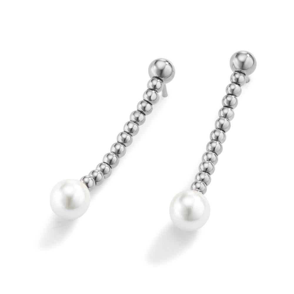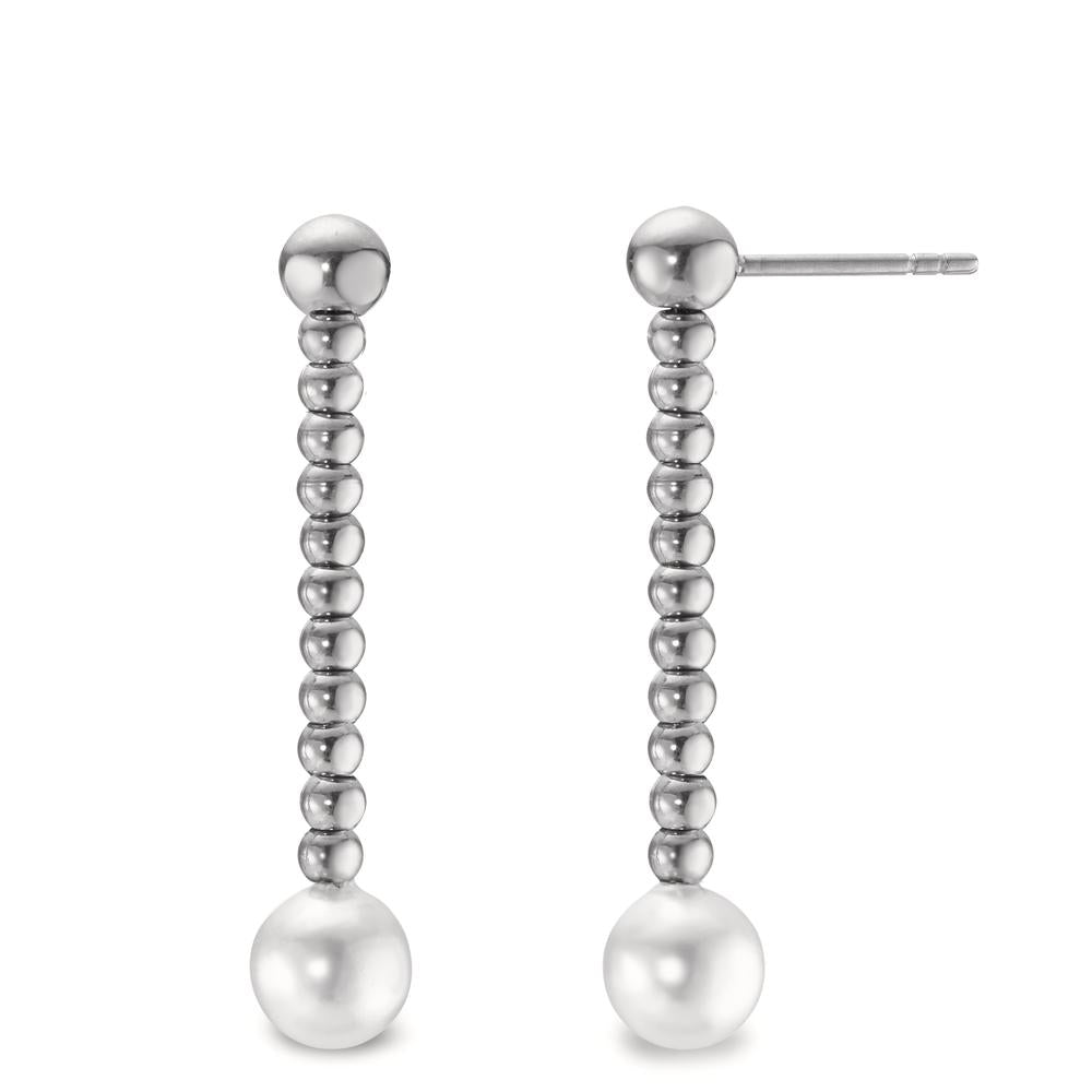 Perlohrhänger Miyako aus Edelstahl mit weissen Muschelperlen, Comfort Verschluss, 38mm