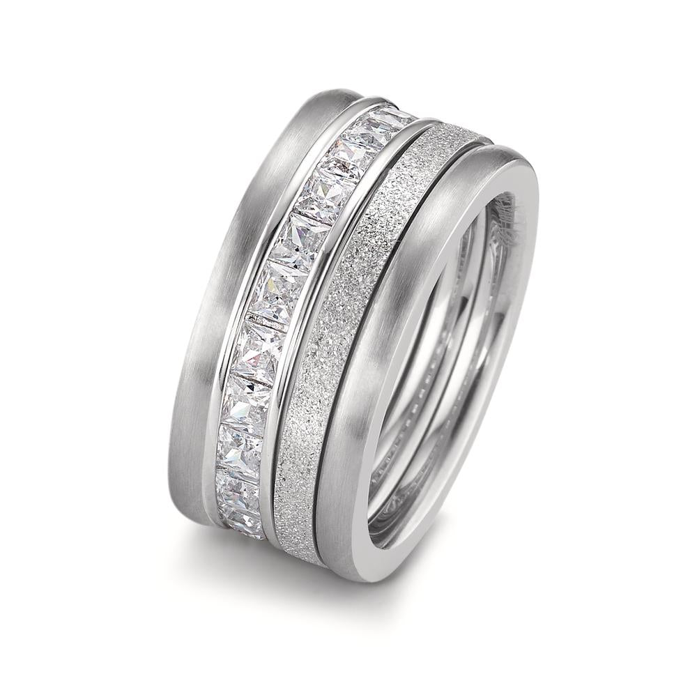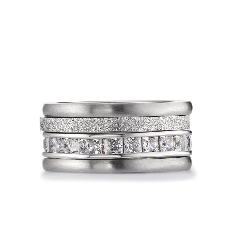 Eleganter Damenring aus hochwertigem Edelstahl, veredelt mit funkelnden Zirkonia-Steinen. Das moderne Design mit mattierten und glänzenden Elementen verleiht Ihrem Look zeitlose Eleganz und Stil. Perfekt für jeden Anlass und ein echter Hingucker im Schmuckkästchen.