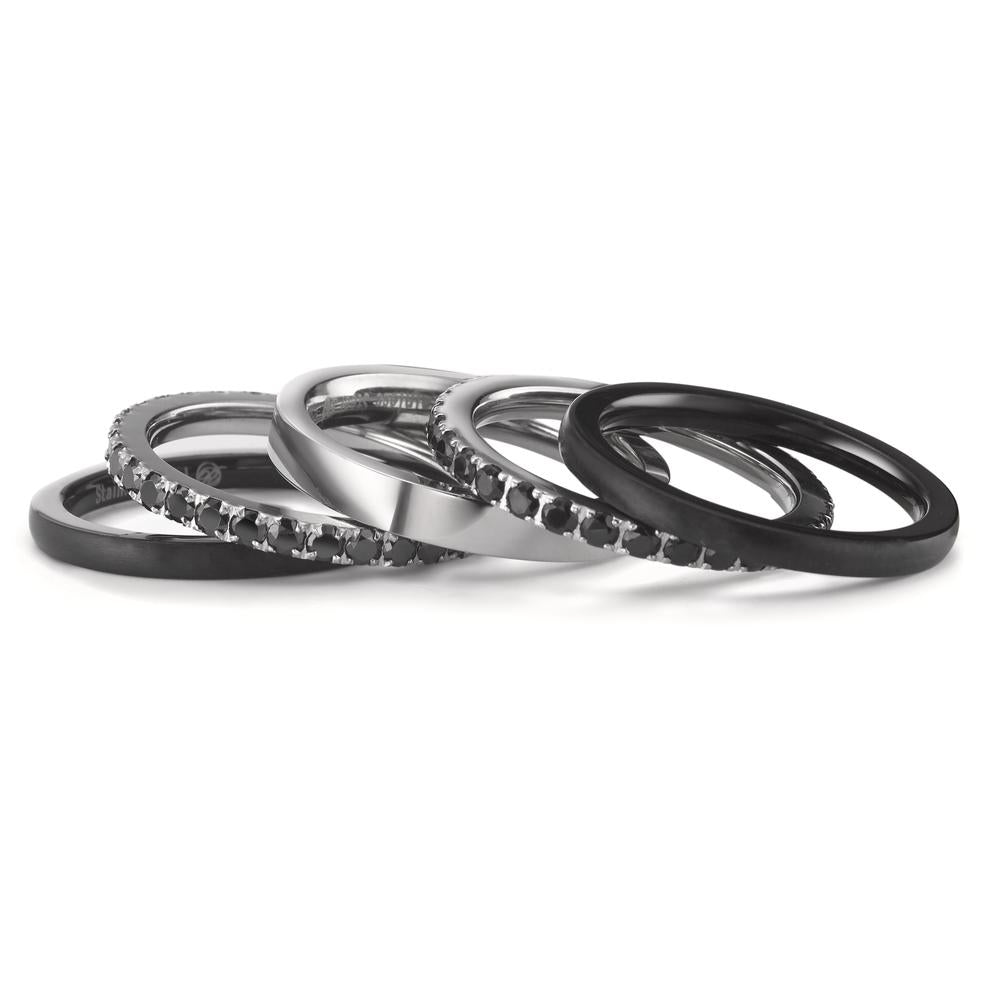 Moderner Damen Fingerring aus hochwertigem Edelstahl mit schwarzer Keramik-Innenseite. Verziert mit funkelnden schwarzen Zirkonia, die dem Ring ein edles und zugleich elegantes Aussehen verleihen. Perfekt für stilbewusste Frauen, die zeitlosen Schmuck schätzen.