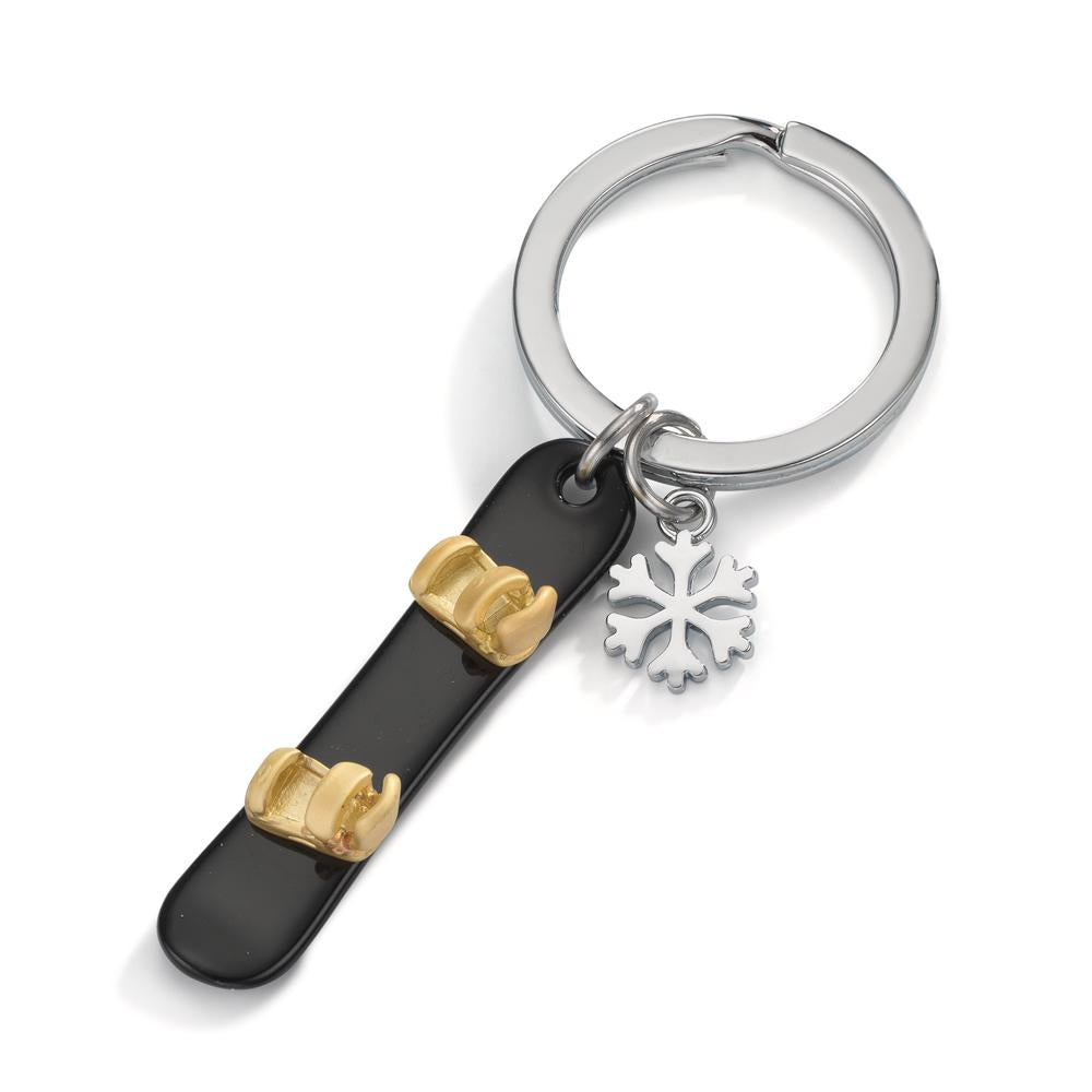 Stylischer Schlüsselanhänger aus Metall mit Snowboard-Design. Das schwarze Snowboard mit goldfarbenen Bindungen und der kleine Schneeflocken-Anhänger machen ihn zum perfekten Accessoire für Snowboard-Fans und Wintersportliebhaber. Robust und modern – ideal als Geschenk oder für den Eigengebrauch.